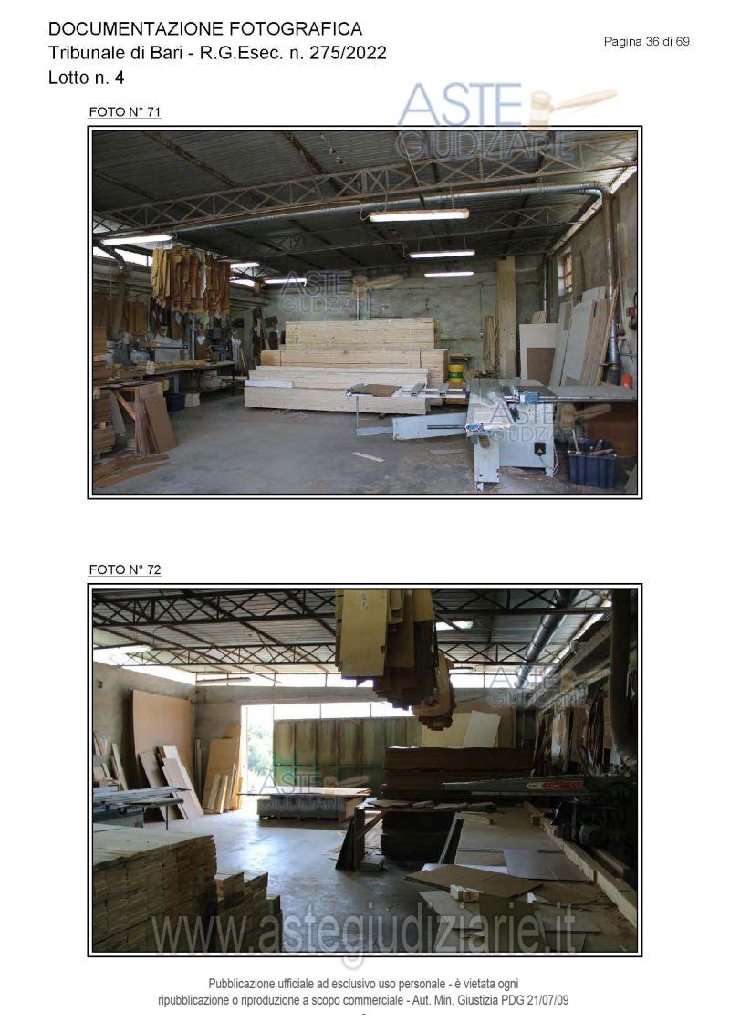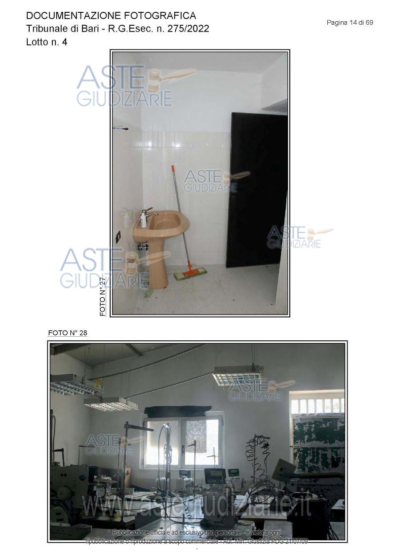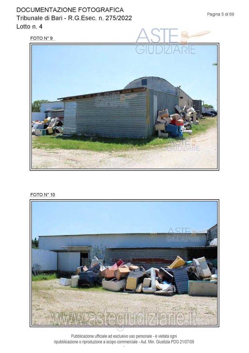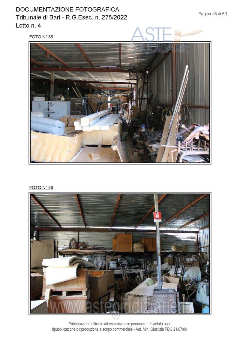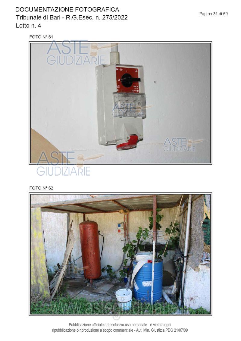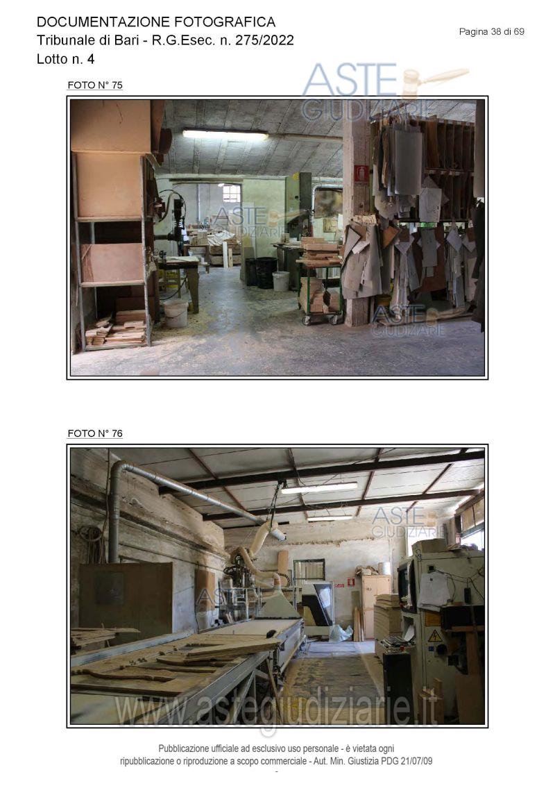 Vendita all'asta Senza incanto, con gara telematica asincrona - LOTTO 4: Piena proprietà degli immobili costituenti un opificio ( due corpi di fabbrica) destinato a laboratorio artigianale e da tre fondi rustici. Prezzo base € 462.462,00 (offerta minima € 346.847,00). Data inizio operazioni di vendita: 15/12/2025 ore 10:00. Giudice Dott. Antonio Ruffino. Professionista delegato alla vendita Not. Francesco Amendolare - Email "famendolare@notariato.it"; Tel. 0803036189. Custode Giudiziario Not. Francesco Amendolare - Email "famendolare@notariato.it"; Tel. 0803036189. Rif. Tribunale di Bari - Esecuzione immobiliare post legge 80 n. 275/2022