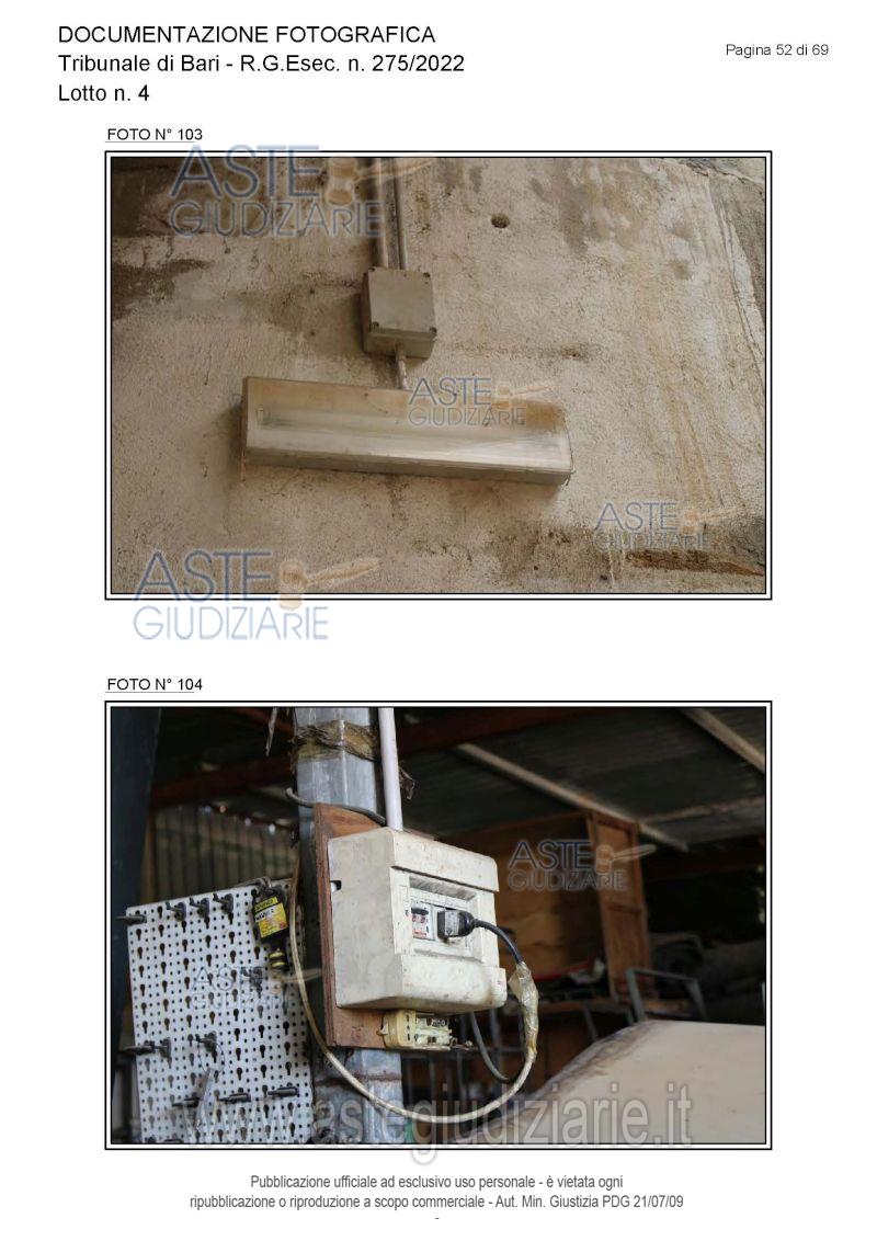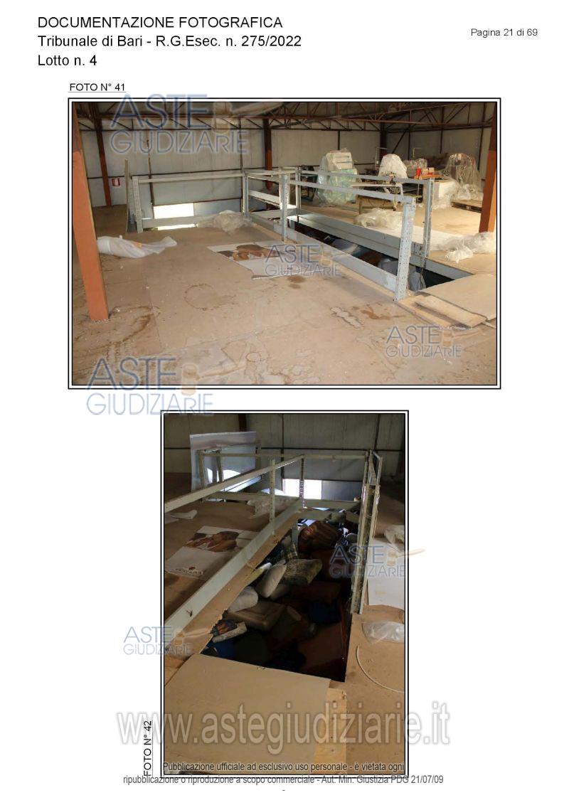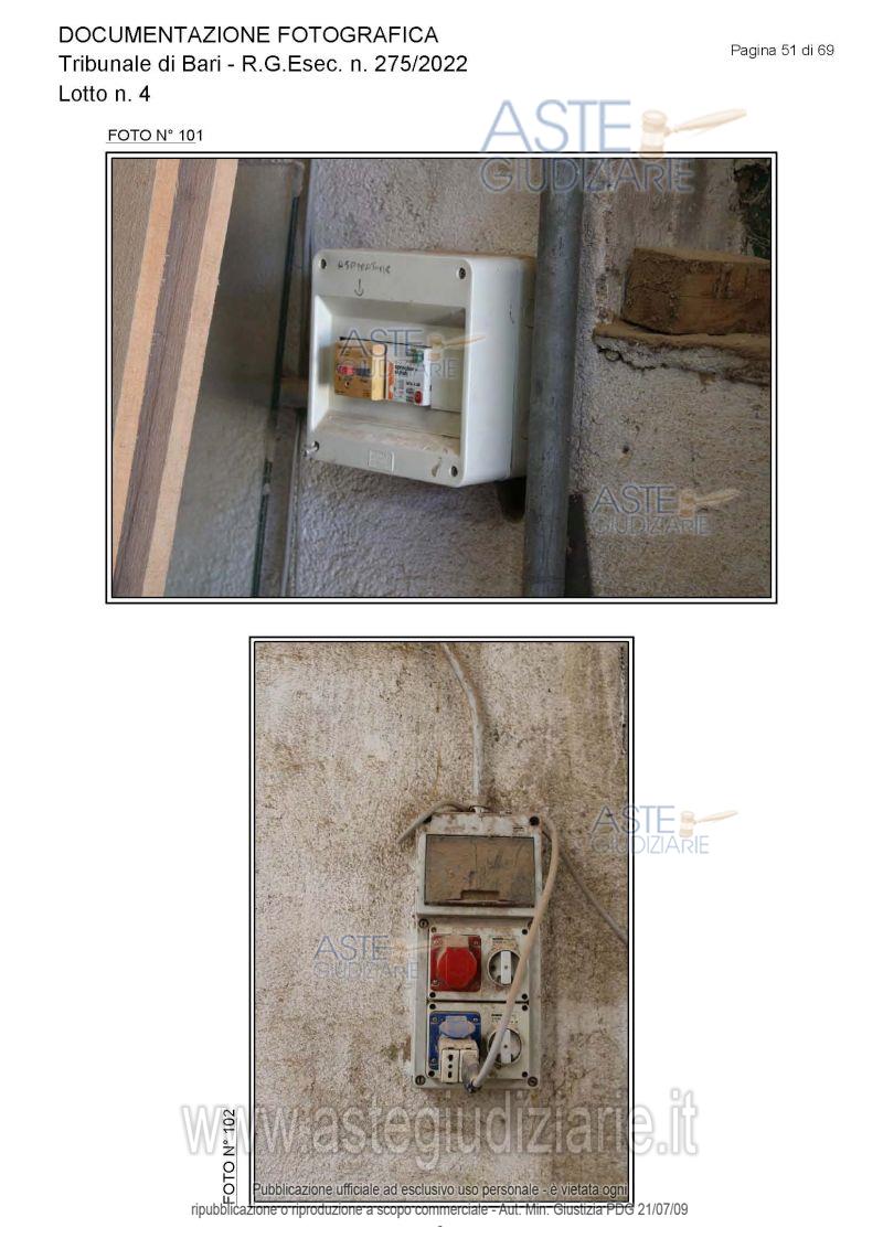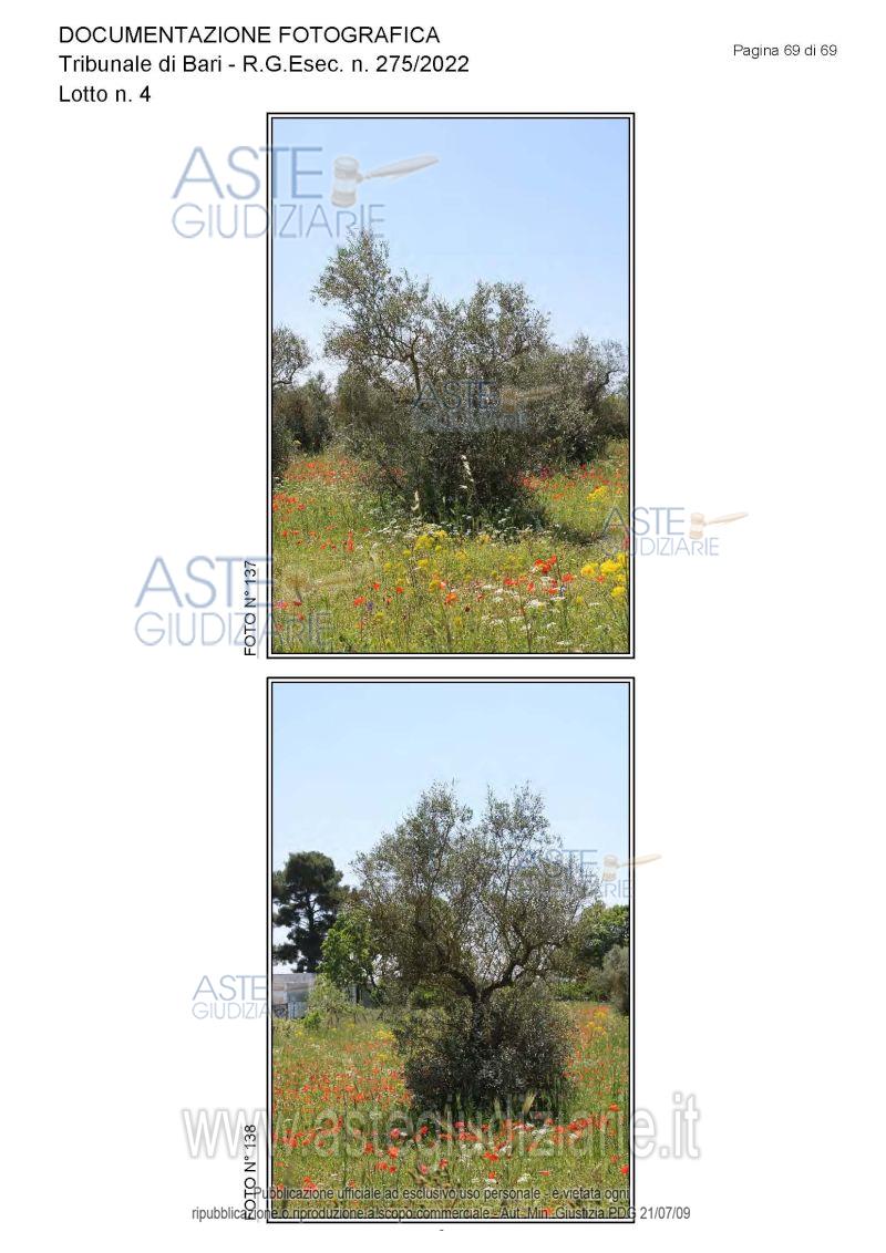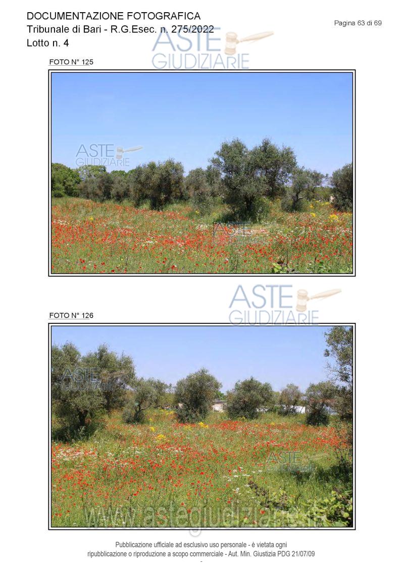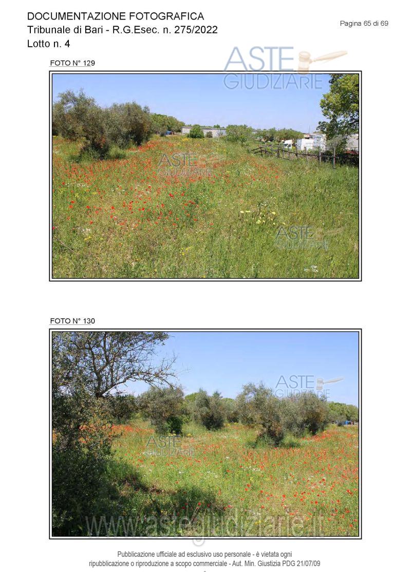 Vendita all'asta Senza incanto, con gara telematica asincrona - LOTTO 4: Piena proprietà degli immobili costituenti un opificio ( due corpi di fabbrica) destinato a laboratorio artigianale e da tre fondi rustici. Prezzo base € 462.462,00 (offerta minima € 346.847,00). Data inizio operazioni di vendita: 15/12/2025 ore 10:00. Giudice Dott. Antonio Ruffino. Professionista delegato alla vendita Not. Francesco Amendolare - Email "famendolare@notariato.it"; Tel. 0803036189. Custode Giudiziario Not. Francesco Amendolare - Email "famendolare@notariato.it"; Tel. 0803036189. Rif. Tribunale di Bari - Esecuzione immobiliare post legge 80 n. 275/2022