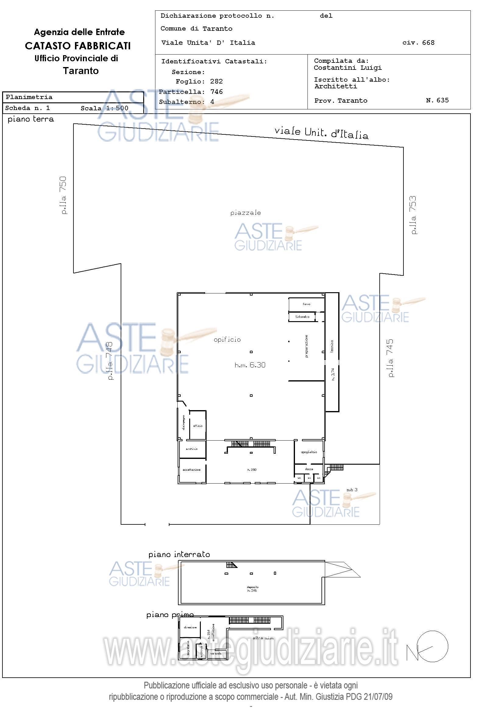 Vendita all'asta Senza incanto, con gara telematica asincrona - LOTTO UNICO: Capannone industriale costituito da un unico fabbricato su tre livelli (piano interrato, piano terra e primo piano), oltre ad area esterna pertinenziale interamente recintata. Prezzo base € 920.433,00 (offerta minima € 690.325,00). Data inizio operazioni di vendita: 11/03/2026 ore 16:00. Giudice Andrea Paiano. Professionista delegato alla vendita Avv. Roberto Pugliese. Custode Giudiziario Ivg Taranto - Email "ivgta.visiteimmobili@gmail.com". Rif. Tribunale di Taranto - Esecuzione immobiliare post legge 80 n. 225/2019