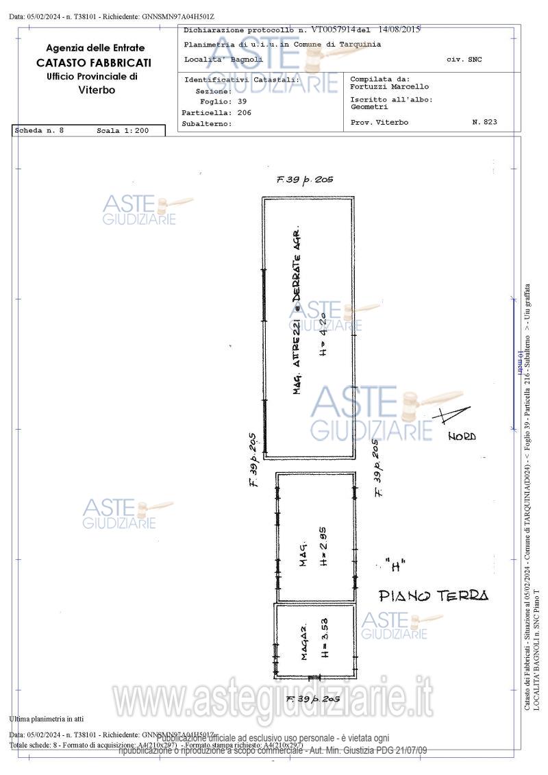 Vendita all'asta Senza incanto, con gara telematica asincrona - LOTTO UNICO: Capannone con accessori per uso industriale e relativo terreno pertinenziale, sito in località Bagnoli S. Antonio, 01016 Tarquinia (VT). Prezzo base € 330.000,00 (offerta minima € 247.500,00). Data inizio operazioni di vendita: 15/12/2025 ore 10:00. Professionista delegato alla vendita Claudia Di Brigida - Email "claudiadibrigida@gmail.com"; Tel. 3336486439. Custode Giudiziario Claudia Di Brigida - Email "claudiadibrigida@gmail.com"; Tel. 3336486439. Rif. Tribunale di Civitavecchia - Espropriazione immobiliare (cartabia) n. 197/2023
