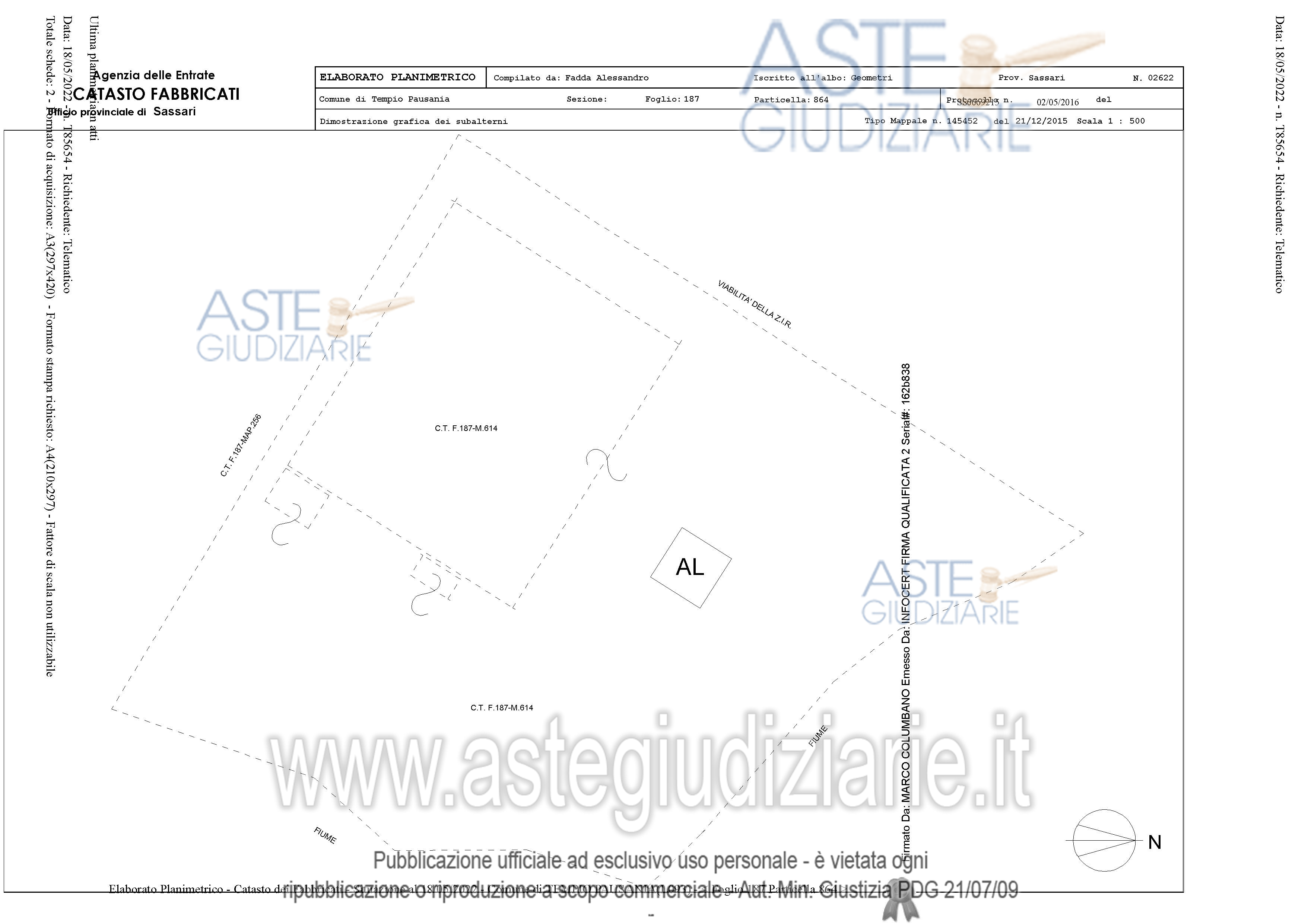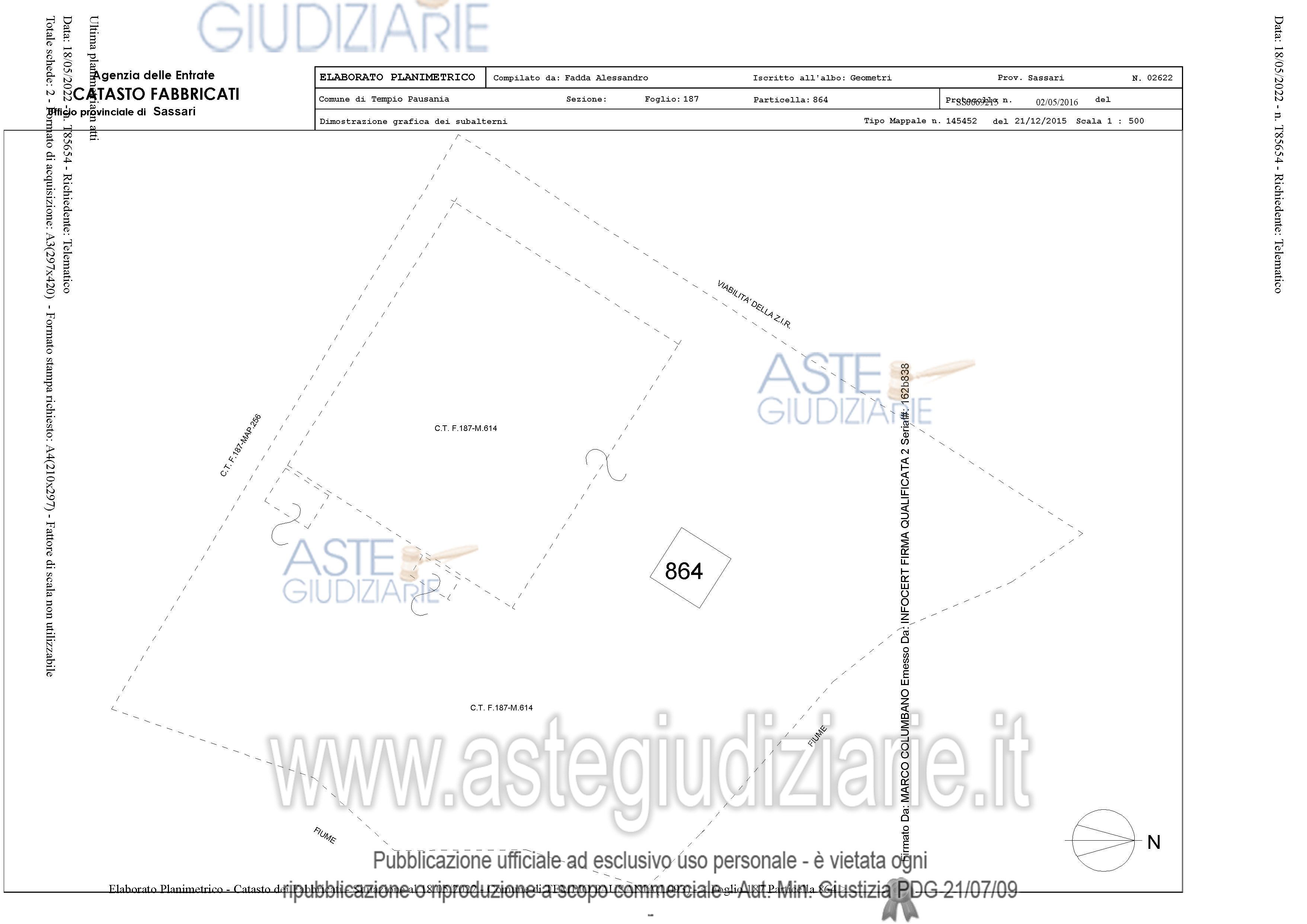 Vendita all'asta Senza incanto, con gara telematica asincrona - LOTTO UNICO: FABBRICATO sito nella Zona Industriale del Comune di Tempio Pausania, che ha accesso dal piano terra ed è destinato ad uso industriale, disposto su due livelli entrambe fuori terra, dispone di accesso autonomo coperto, accessibile dall’ampia area circostante al capannone industriale. Immobile identificato nel NCEU al foglio 187, mappale 614. Prezzo base € 281.395,00 (offerta minima € 211.046,25). Data inizio operazioni di vendita: 16/04/2026 ore 16:00. Giudice Alessandro Di Giacomo. Professionista delegato alla vendita Avv. Michele Careddu - Email "studiocareddu@tiscali.it"; Tel. 079633133. Custode Giudiziario Ivg Di Tempio Pausania - Email "visite.ivgtempio@gmail.com"; Tel. 079630505. Rif. Tribunale di Tempio Pausania - Esecuzione immobiliare post legge 80 n. 165/2020