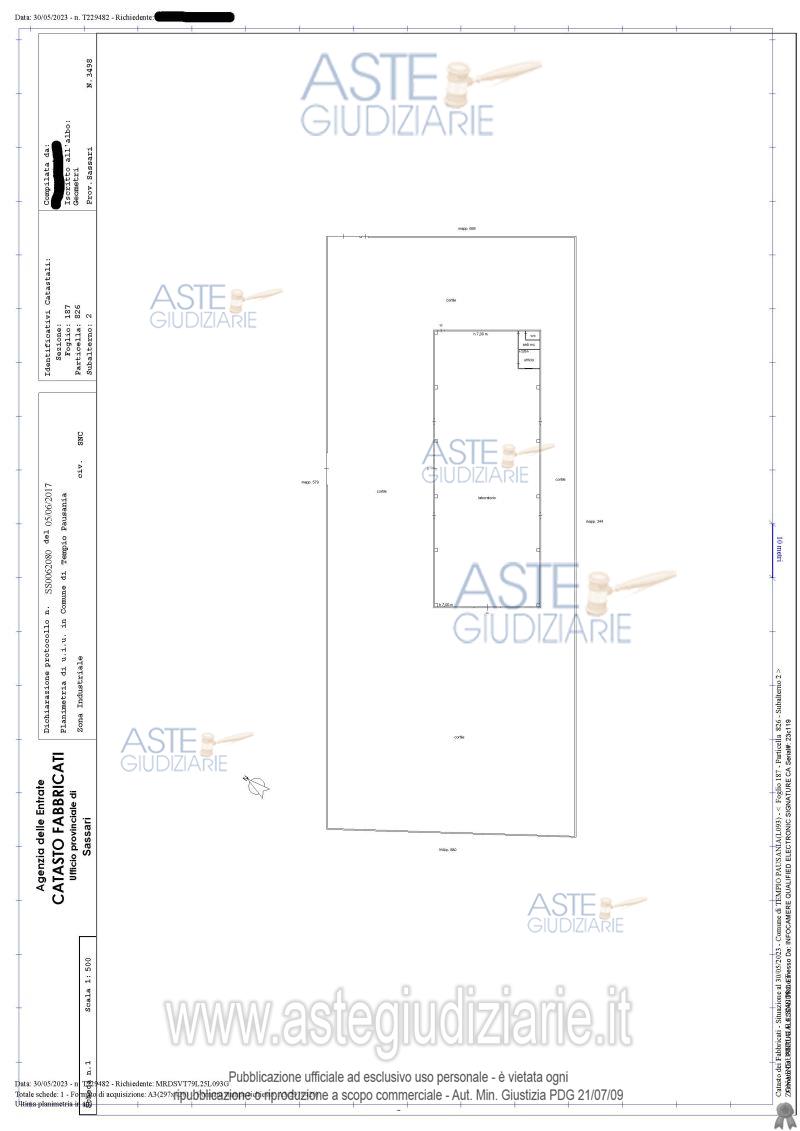 Vendita all'asta Senza incanto, con gara telematica asincrona - LOTTO UNICO: Piena proprietà quota 1/1 del fabbricato sito nella zona industriale di Tempio Pausania (SS), Opificio, posto al piano T, Zona Cens. 1, categoria D/1, distinto all’NCEU sezione N al foglio 187 mappale 826 sub 2. Il fabbricato, come meglio identificato nella relazione di stima e relativi allegati a firma dell’esperto stimatore a cui si rinvia, è composto da un laboratorio, ufficio e bagno per una superficie calpestabile” complessiva di mq 997,00 con annesso cortile di mq 3.970,00. Prezzo base € 154.214,00 (offerta minima € 115.661,00). Data inizio operazioni di vendita: 07/05/2026 ore 16:00. Giudice Alessandro Di Giacomo. Professionista delegato alla vendita Dott. Stefano Chiodino - Email "stefanochiodino@gmail.com"; Tel. 078924463. Custode Giudiziario Ivg Tempio Pausania - Email "visite.ivgtempio@gmail.com"; Tel. 079630505. Rif. Tribunale di Tempio Pausania - Esecuzione immobiliare post legge 80 n. 74/2022