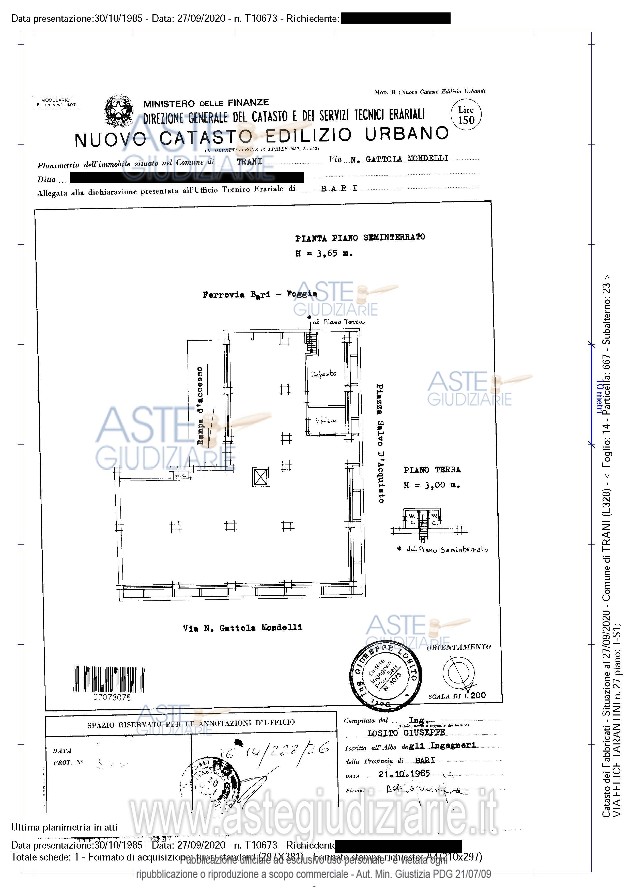 Vendita all'asta Senza incanto, con gara telematica sincrona - LOTTO 4: Piena prorprietà per la quota di 1000/1000 dell'opificio sito in Trani (BT) alla Via Papa Giovanni XXIII n.152, piano T-1. Prezzo base € 138.558,00 (offerta minima € 103.920,00). Data vendita 23/12/2025 ore 09:00. Rif. Tribunale di Trani - Volontaria giurisdizione n. 218/2022