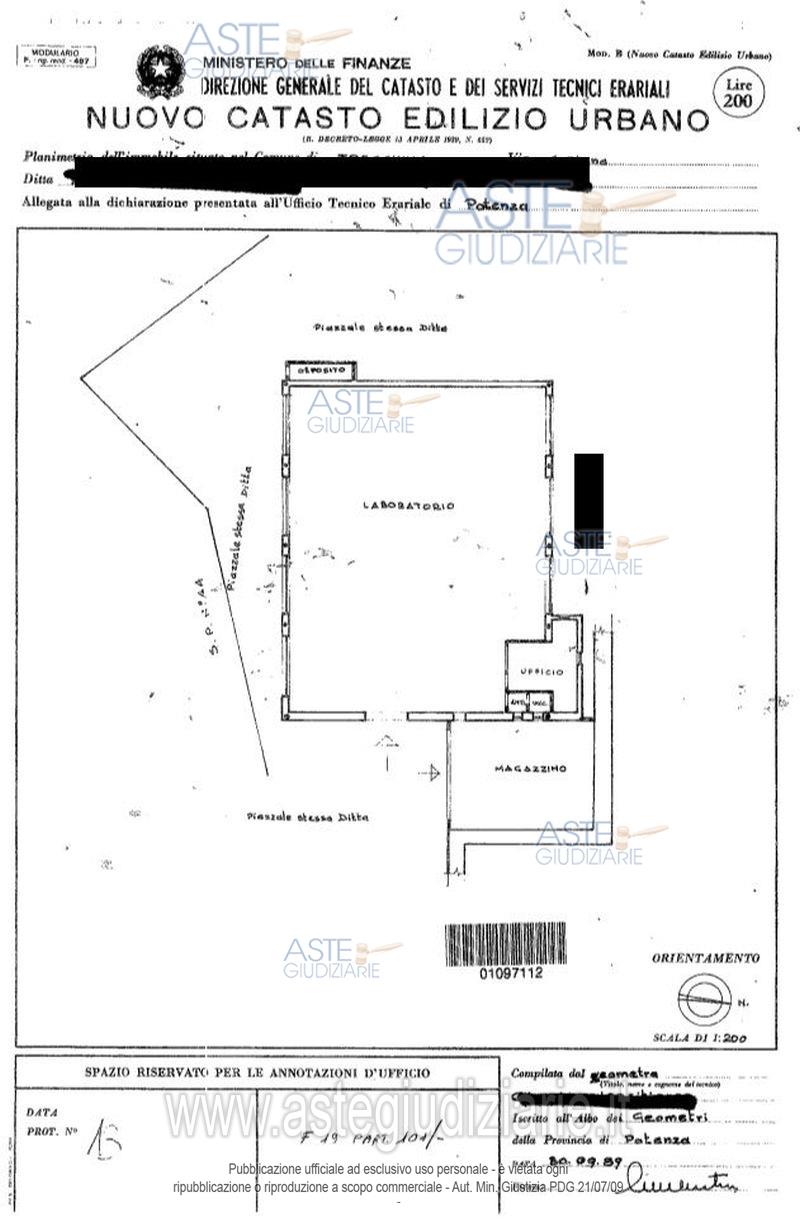 Vendita all'asta Senza incanto, con gara telematica asincrona - LOTTO UNICO: Capannone industriale sito nel comune di Trecchina (PZ) alla contrada Sant'Elena, censito al NCEU al Foglio 19, P.lla 101, Categoria C/3, classe 5, Consistenza 367mq, Rendita catastale Euro 815,02. Immobile LIBERO. Prezzo base € 63.720,00 (offerta minima € 47.790,00). Data inizio operazioni di vendita: 17/02/2026 ore 16:00. Curatore Dott. Giampiero Petracca - Email "studio.petracca@tiscali.it"; Cell. 3803496331; Tel. 3803496331. Rif. Tribunale di Lagonegro - Fallimentare (nuovo rito) n. 18/2015