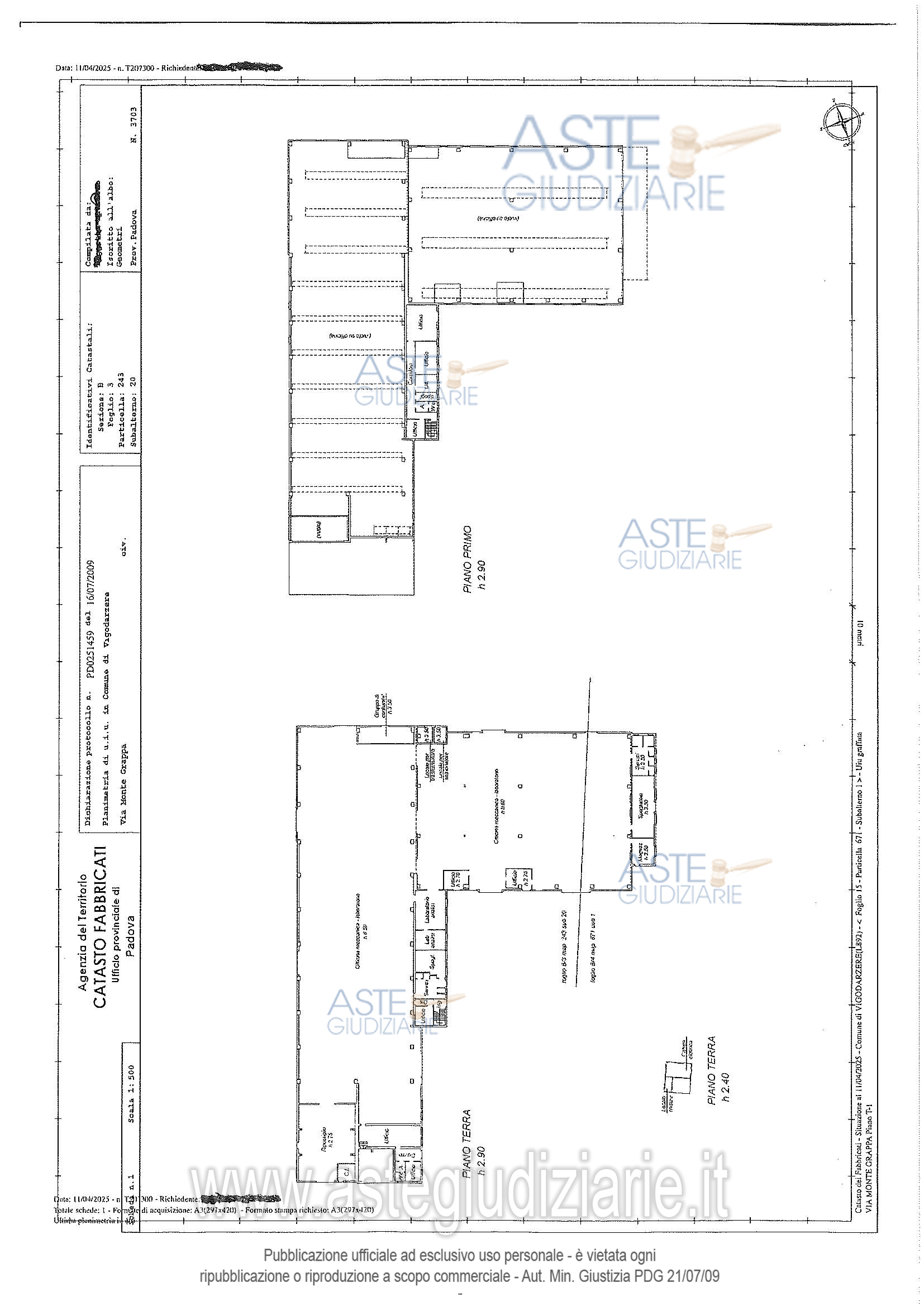 Vendita all'asta Senza incanto, con gara telematica sincrona - LOTTO UNICO: Capannone ad uso artigianale con abitazione del custode e terreni limitrofi . Prezzo base € 451.000,00 (offerta minima € 339.000,00). Data vendita 08/07/2026 ore 15:30. Custode Giudiziario: Dott. Luigi Barzazi - Email "aste@consulstudio.com"; Tel. 049/773206.