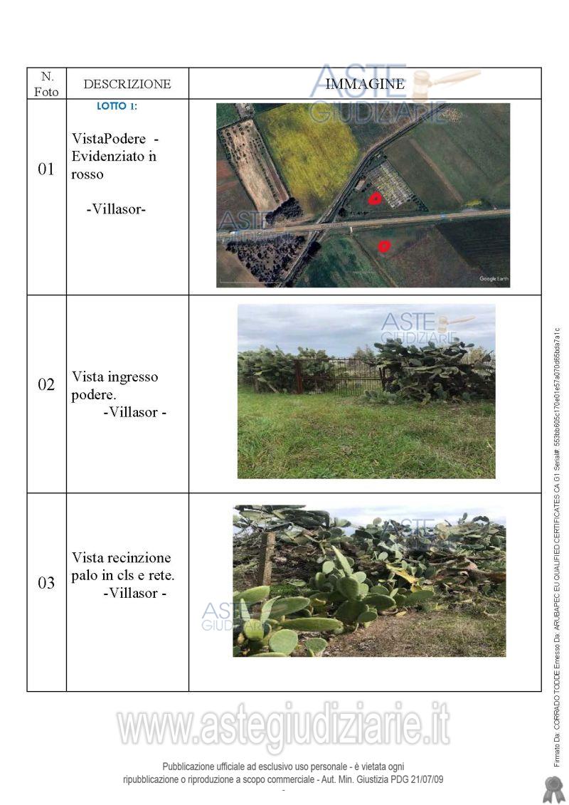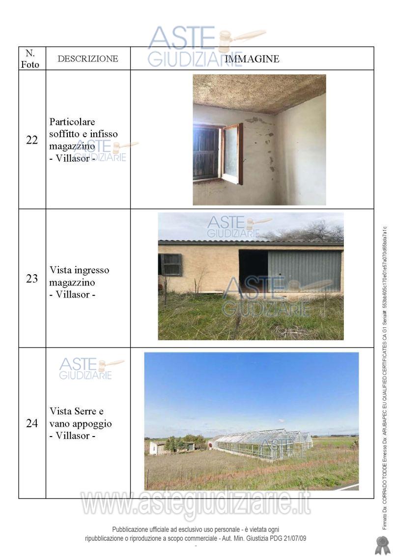 Vendita all'asta Senza incanto, con gara telematica asincrona - LOTTO 1: Quota pari a 1/1 del diritto di proprietà sull’azienda agricola sita in località Cuccuru Sa Feurra “Rio Angiargia” avente una superficie catastale complessiva di Ha 00.96.85, diviso in due corpi dalla S.P. n. 7 e distante circa 2 km dal bivio Villasor-San Sperate, composta dai seguenti manufatti:1.Fabbricato rurale realizzato in muratura e copertura solaio in latero cemento ed eternit 2. Ricovero gruppo elettrogeno realizzato in muratura. 3. Serra con struttura in ferro e chiusura in vetro . Prezzo base € 15.232,00 (offerta minima € 11.424,00). Data inizio operazioni di vendita: 27/05/2026 ore 11:00. Giudice Dott. Flaminia Ielo. Professionista delegato alla vendita Not. Paolo Tardiola - Email "ufficiouniconotai@pec.it"; Tel. 07060222574. Custode Giudiziario Ivg Cagliari - Email "ivg.visiteimmobili@tiscali.it"; Tel. 0702299036. Rif. Tribunale di Cagliari - Esecuzione immobiliare post legge 80 n. 807/1994