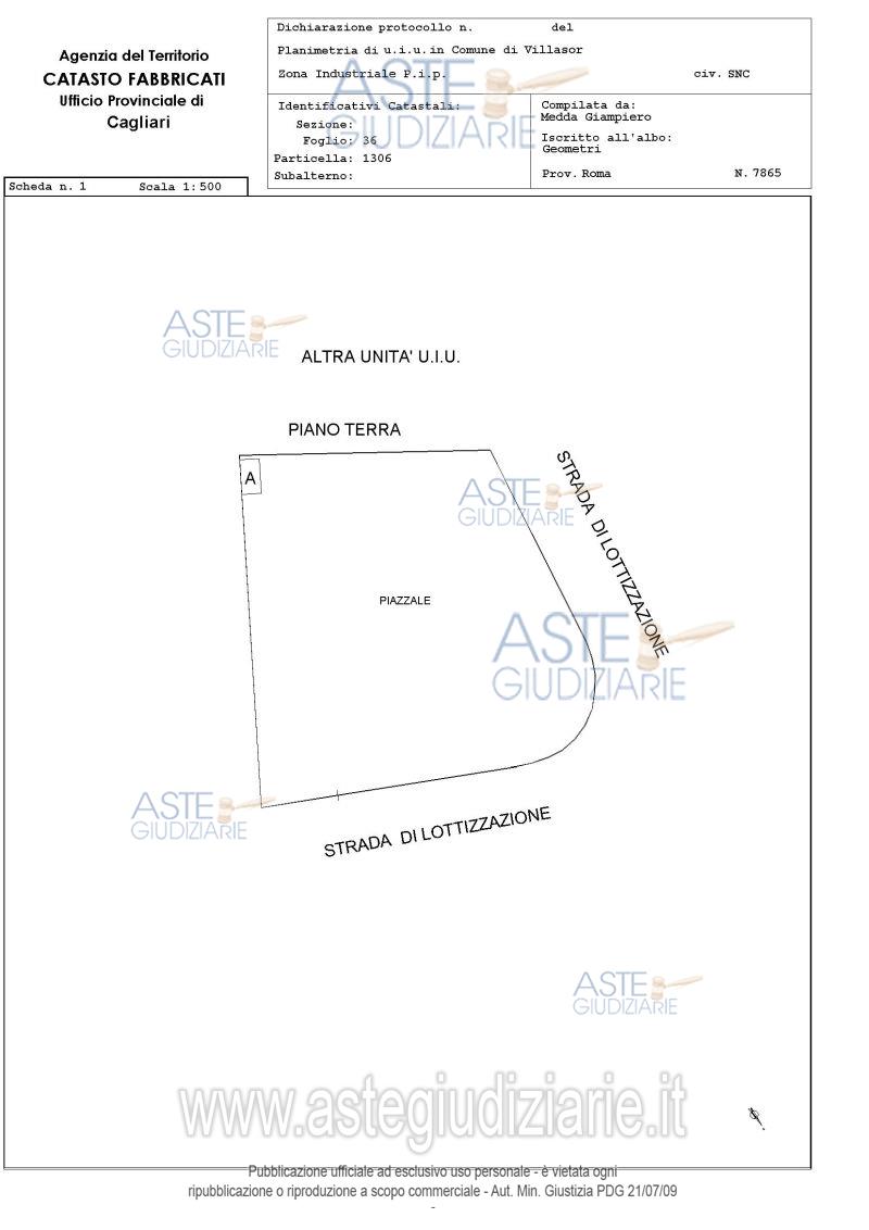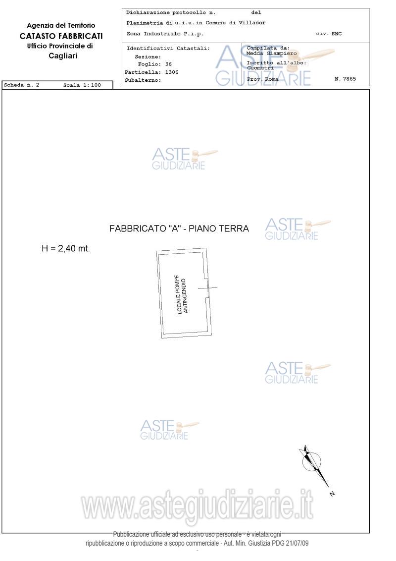 Vendita in attesa dell'emissione del nuovo bando d'asta. LOTTO UNICO: sull’immobile sito a Villasor, Zona Industriale PIP, identificato al Catasto Fabbricati del predetto Comune al foglio 36, Part. 1306. Ultimo prezzo base € 19.780,00 (offerta minima € 14.835,00). Giudice Dott. Silvia Cocco. Professionista delegato alla vendita Dott. Marco Ferri - Email "studioferrima@tiscali.it"; Tel. 070669566. Rif. Tribunale di Cagliari - Esecuzione immobiliare post legge 80 n. 428/2017
