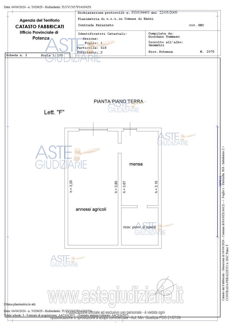 Vendita all'asta Senza incanto, con gara telematica asincrona - LOTTO 1: FABBRICATI RURALI. Prezzo base € 82.500,00 (offerta minima € 61.875,00). Data inizio operazioni di vendita: 25/06/2026 ore 15:00. Professionista delegato alla vendita Avv. Anna Sbailo - Email "annasbailo@yahoo.it"; Cell. 3470865516. Custode Giudiziario Avv. Anna Sbailo - Email "annasbailo@yahoo.it"; Cell. 3470865516. Rif. Tribunale di Potenza - Esecuzione immobiliare post legge 80 n. 19/2022