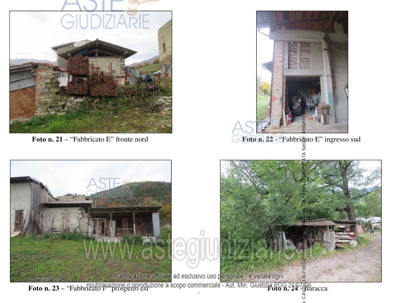 Vendita all'asta Senza incanto, con gara telematica asincrona - LOTTO 1: Piena proprietà dell'intero di piccolo fondo rustico, formato da terreni seminativi e boschivi e da fabbricati sia strumentali che abitativi. Prezzo base € 49.580,00 (offerta minima € 37.185,00). Data inizio operazioni di vendita: 18/11/2025 ore 15:20. Giudice Stefano Aldo Tiberti. Professionista delegato alla vendita Not. Giovanna Covati - Email "gcovati@notariato.it". Custode Giudiziario Dott. Istituto Vendite Giudiziarie Di Parma E Piacenza - Email "immobiliparma@ivgparma.it"; Tel. 0521273762. Rif. Tribunale di Piacenza - Esecuzione immobiliare post legge 80 n. 182/2019