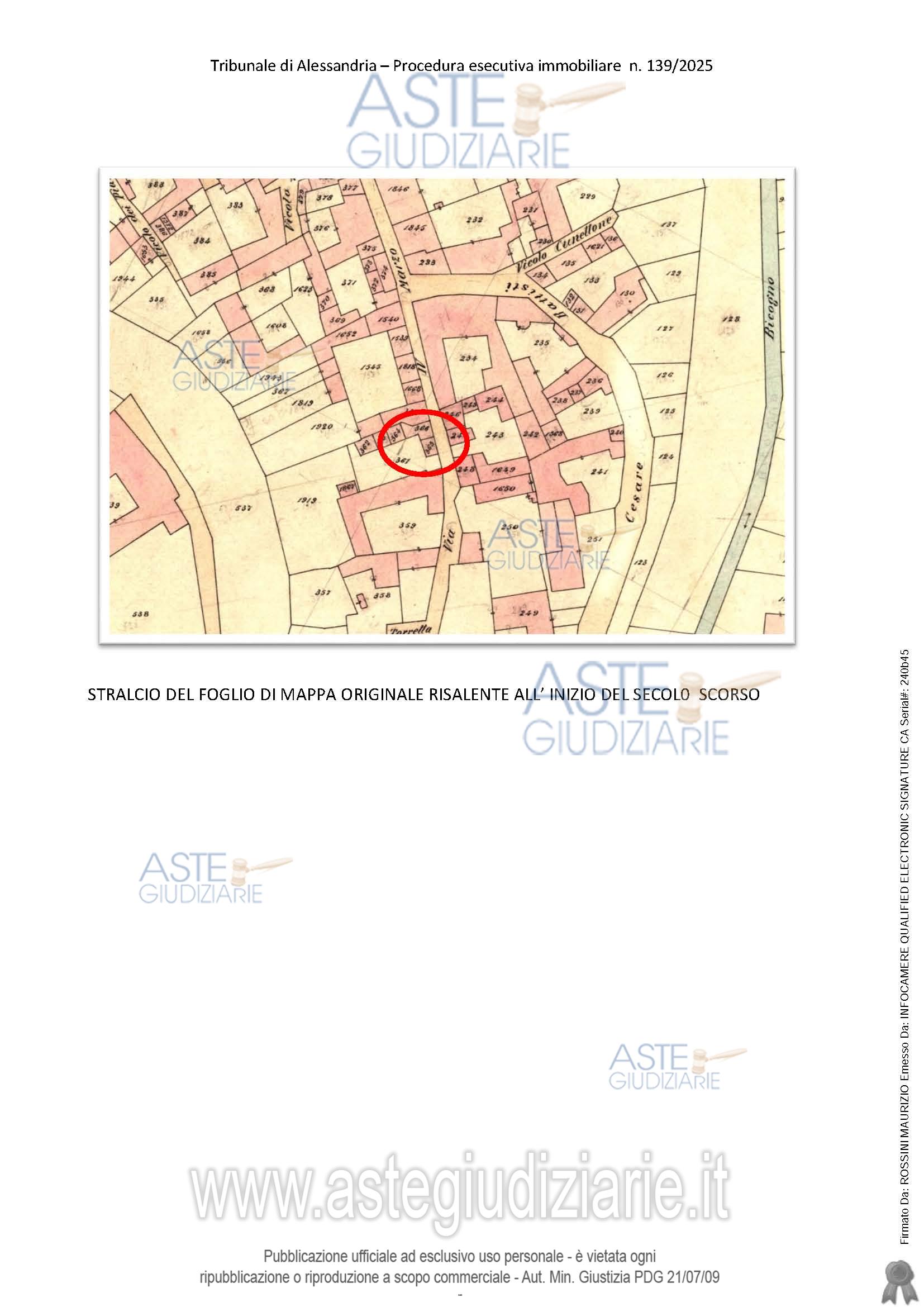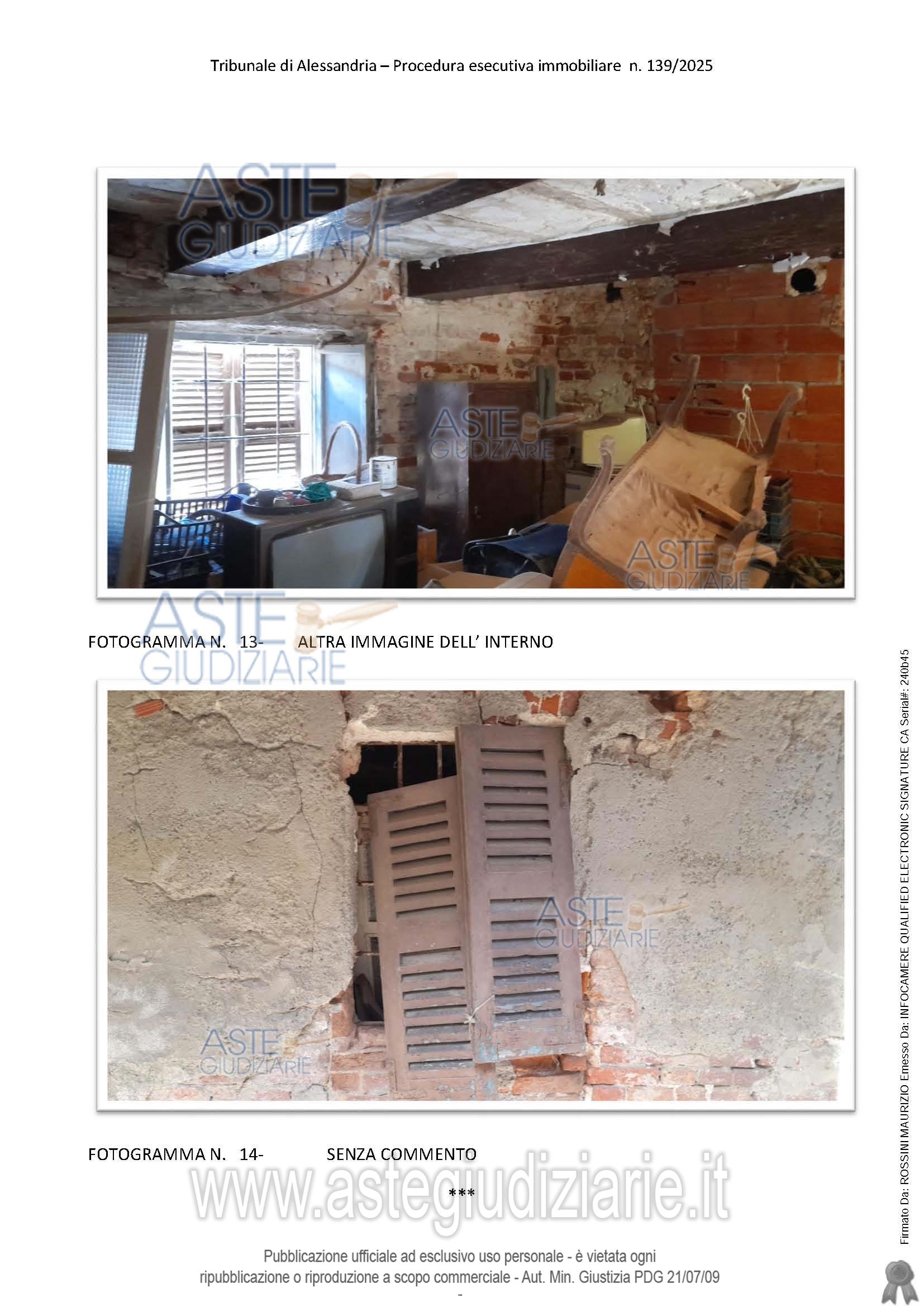 Vendita all'asta Senza incanto - LOTTO UNICO: Fabbricato rurale ad uso abitativo, edificio elevato a 2 piani ft, oltre sottotetto, con ballatoio verso cortile interno, in mediocri condizioni di manutenzione, adibito a deposito magazzino. Prezzo base € 13.295,00 (offerta minima € 9.971,25). Data vendita 29/04/2026 ore 15:00. Giudice Michele Delli Paoli. Professionista delegato alla vendita Avv. Barbara Berello - Email "segreteria@ponzanoberello.com"; Cell. 3387687784; Tel. 019692397. Custode Giudiziario Avv. Barbara Berello - Email "segreteria@ponzanoberello.com"; Cell. 3387687784. Rif. Tribunale di Alessandria - Espropriazione immobiliare (cartabia) n. 139/2025
