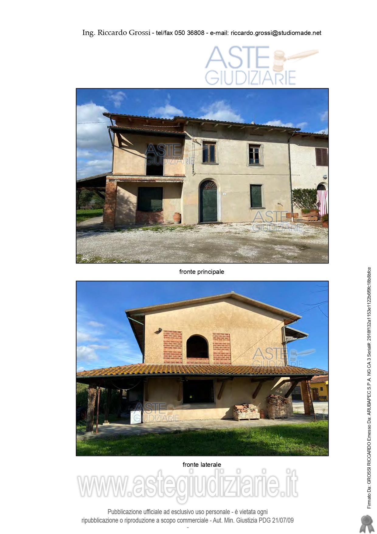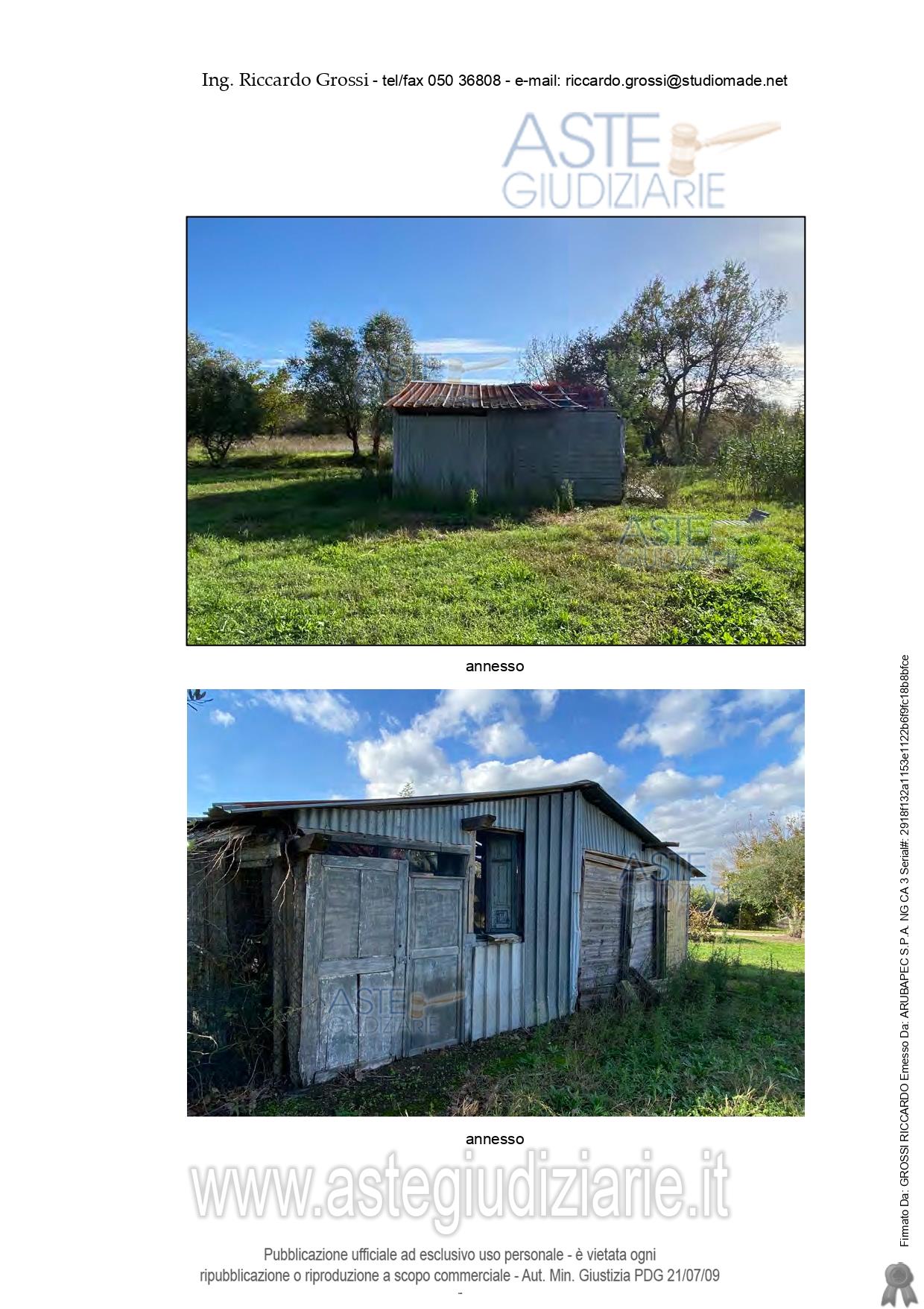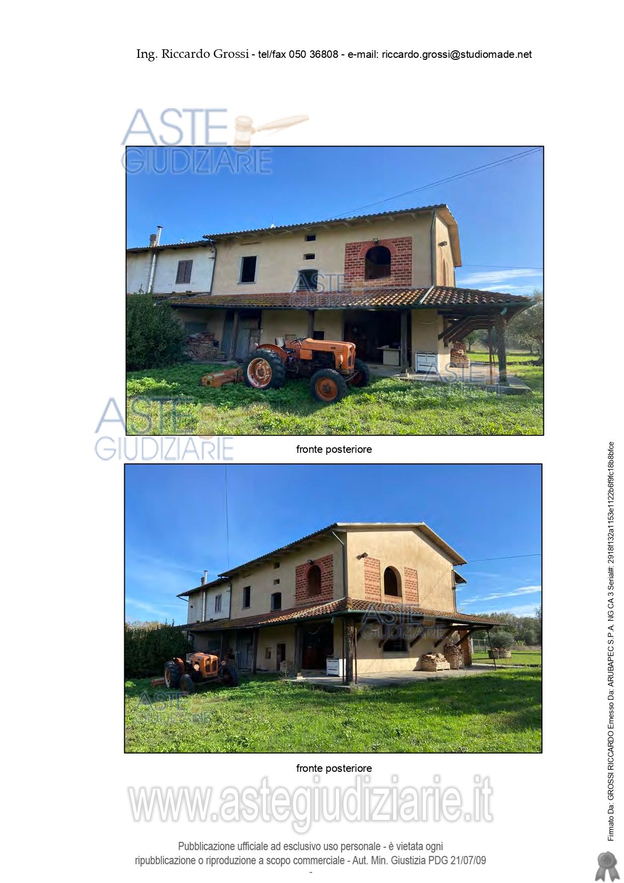 Vendita all'asta Senza incanto, con gara telematica asincrona - LOTTO 2: Edificio elevato per 2 piani fuori terra, intonacato esternamente ed internamente lasciato al grezzo, articolato in 4 vani, oltre ad ampio ingresso/disimpegno al pt, ed in 5 vani, oltre a disimpegno al piano 1°. Annesso elevato per un solo piano fuori terra formato da 2 vani (circa 50 mq) formato da elementi in legno e lamiera. Due appezzamenti di terreno agricolo. Si accede da Via Valdinievole per mezzo di strada sterrata. Prezzo base € 160.000,00 (offerta minima € 120.000,00). Data inizio operazioni di vendita: 26/02/2026 ore 12:00. Giudice Dott. Laura Pastacaldi. Professionista delegato alla vendita Avv. Lina Cini - Email "studiolegalecini.linacini@gmail.com"; Tel. 050540286. Custode Giudiziario Dott. Cosimo Erriquez - Email "prenotazionipisa@astagiudiziaria.com"; Cell. 3468748140; Tel. 050554790. Rif. Tribunale di Pisa - Esecuzione immobiliare post legge 80 n. 129/2023