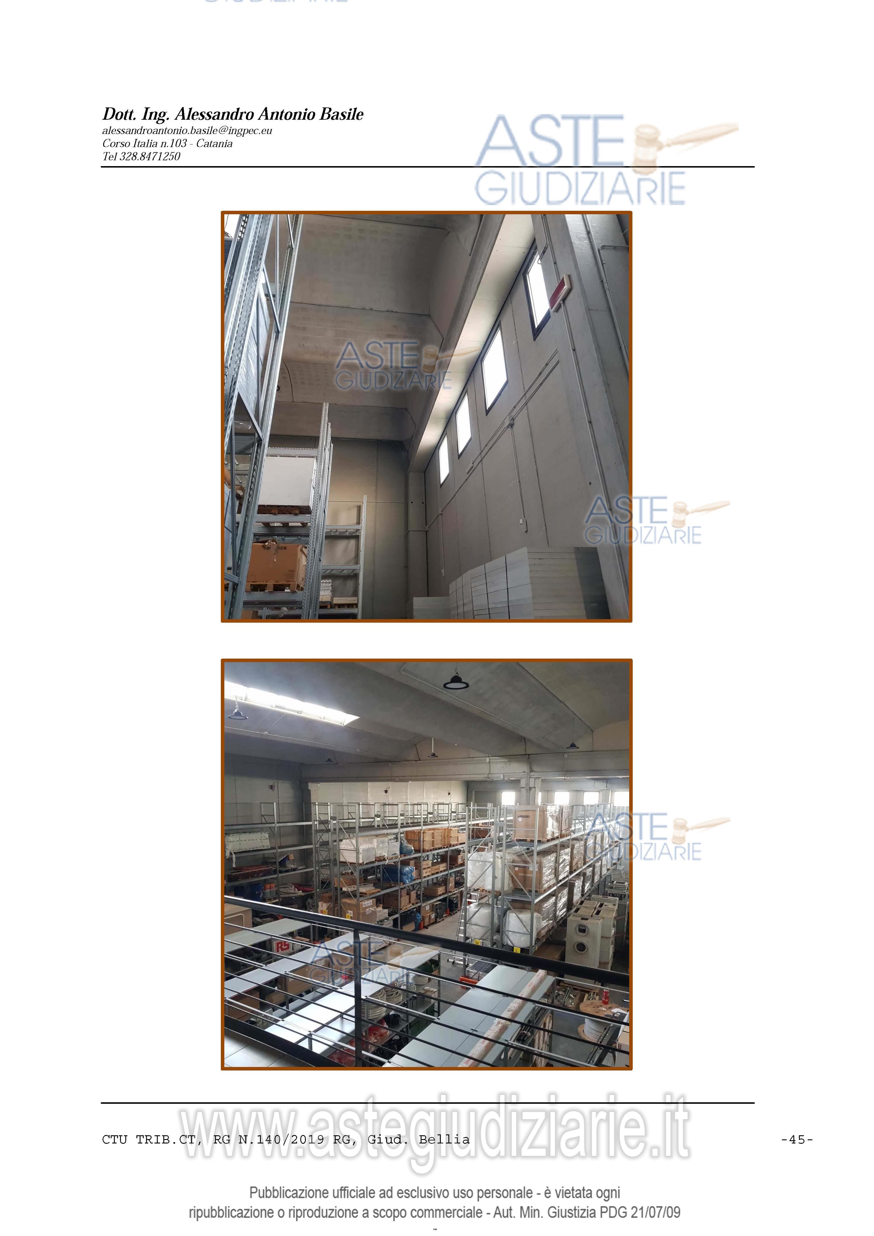 Vendita all'asta Senza incanto, con gara telematica asincrona - LOTTO UNICO: Surface property with a duration of 99 years, starting from 11/11/2005, on a ground floor warehouse of 1,172 square meters, consisting of a single space intended for goods storage with an internal usable height of around 8.00 m (under beam) that reaches in some areas an approximate height of 9.70m, in addition to small ground floor rooms used as storage and a WC, habitable loft with 3 rooms used as office, bathroom, and a small open area at the bottom of the iron staircase connecting to the ground floor. . Prezzo base € 445.600,00 (offerta minima € 334.200,00). Data inizio operazioni di vendita: 14/01/2026 ore 10:00. Giudice Dott. Alessandra Bellia. Custode Giudiziario Aste Giudiziarie Inlinea Spa - Email "vendite@astegiudiziarie.it"; Tel. 0586 201480. Curatore Dott. Tito Antonio Giuffrida. Rif. Tribunale di Catania - Fallimentare (nuovo rito) n. 140/2019