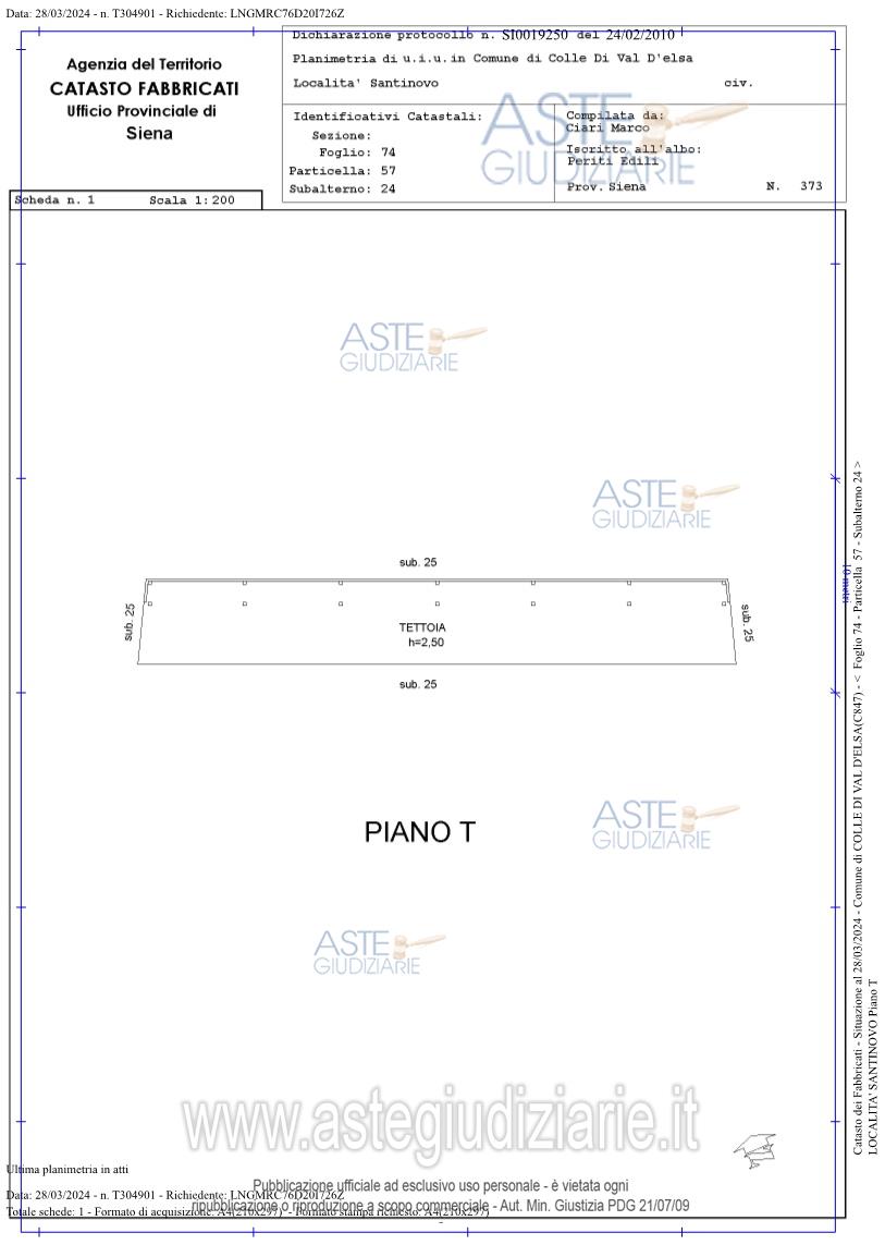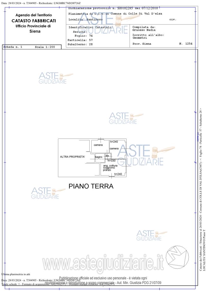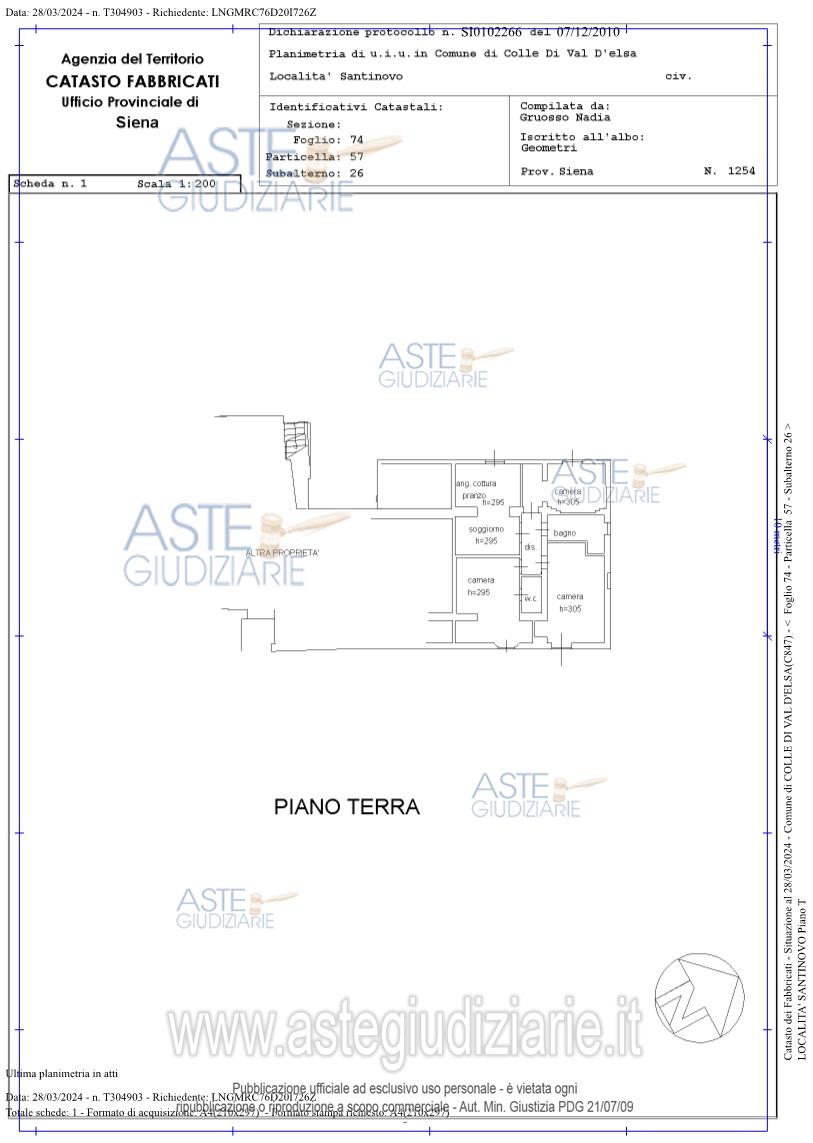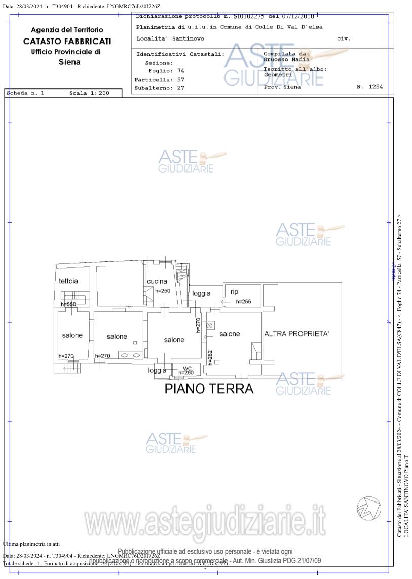 Custode Giudiziario: Avv. Istituto Vendite Giudiziarie Siena Arezzo - Email "visite.ivg@gmail.com"; Tel. 0577/318111; Cell. 329/4447741.