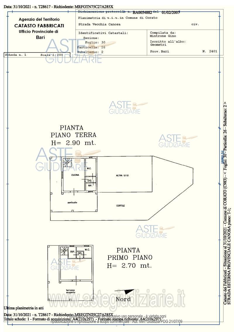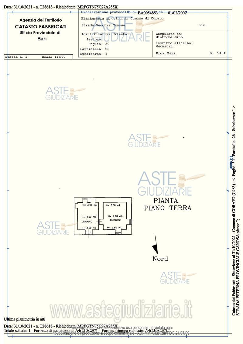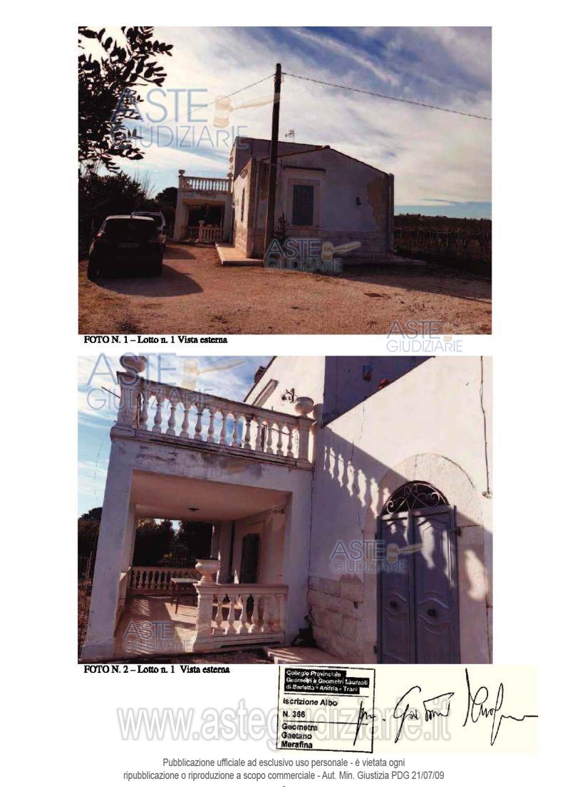 Vendita all'asta Senza incanto, con gara telematica sincrona - LOTTO 1:  Piena proprietà per la quota di 1/1 di Casa rurale sita in Corato (BA) frazione Contrada “Lagomartino” Strada Vecchia Canosa (S.P. n.30), con circostante terreno agricolo coltivato a Vigneto, della superficie complessiva di circa 141,88 mq. - Piena proprietà per la quota di 1/1 di terreno agricolo - Vigneto sito in Corato (Bari) frazione Contrada "Lagomartino" Strada Vecchia Canosa (S.P. n. 30). Superficie complessiva di circa mq 5629. Prezzo base € 149.316,00 (offerta minima € 111.987,00). Data vendita 20/11/2025 ore 11:00. Professionista delegato alla vendita Avv. Adele Cardone - Email "POSTA@STUDIOCARDONEMARTIRE.COM"; Cell. 3931852062; Tel. 0883642095. Custode Giudiziario  Avv. Adele Cardone - Email "POSTA@STUDIOCARDONEMARTIRE.COM"; Cell. 3931852062; Tel. 0883642095.  Rif. Tribunale di Trani - Esecuzione immobiliare post legge 80 n. 86/2021