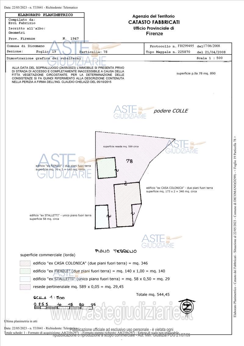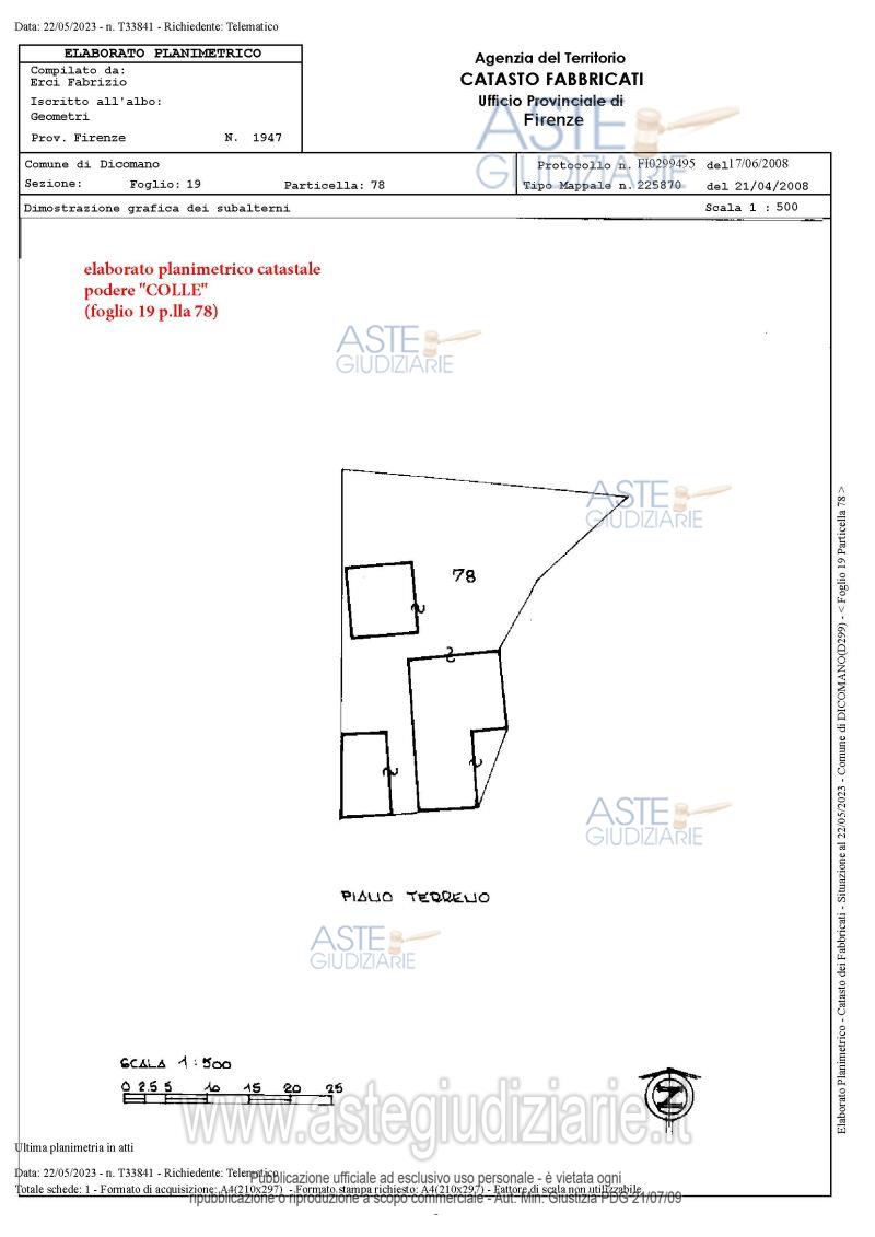 Vendita all'asta Competitiva, con gara telematica sincrona - LOTTO unico: fabbricati allo stato di ruderi denominati podere il “Colle”, sito nel Comune di Dicomano (FI), megliodescritto al C.F. del predetto Comune al Foglio 19, particella 78, privi di strada di accesso e diapprovvigionamenti idrici legittimi, costituiti da tre fabbricati rurali isolati con resede di pertinenza.L’edifico principale (ex colonica) si sviluppa su due piani fuori terra, così come l’antistante ex fienile.Il terzo fabbricato è invece formato da un unico piano fuori terra. Prezzo base € 25.000,00 (offerta minima € 25.000,00). Data vendita 06/03/2026 ore 15:00. Curatore Dott. Leonardo Quagliotti - Email "leonardo.quagliotti@unifi.it"; Tel. 0552645871. Rif. Tribunale di Firenze - Liquidazione giudiziale(cci) n. 101/2025