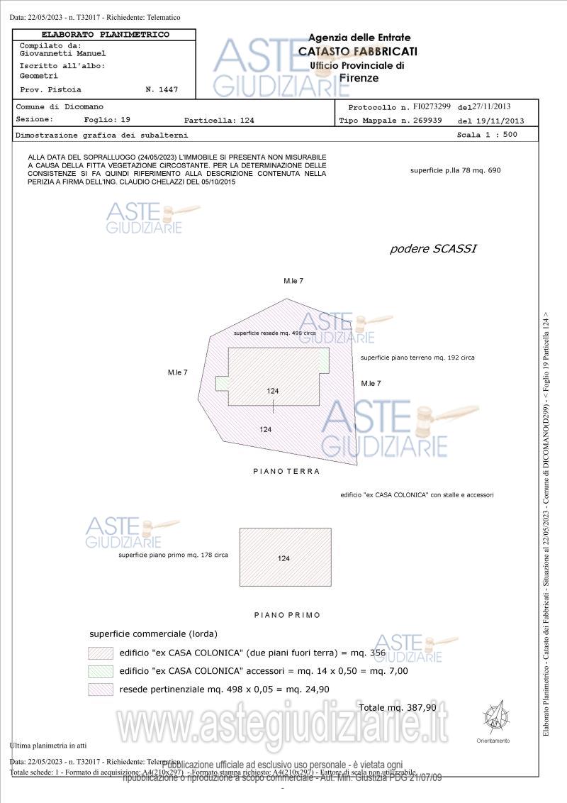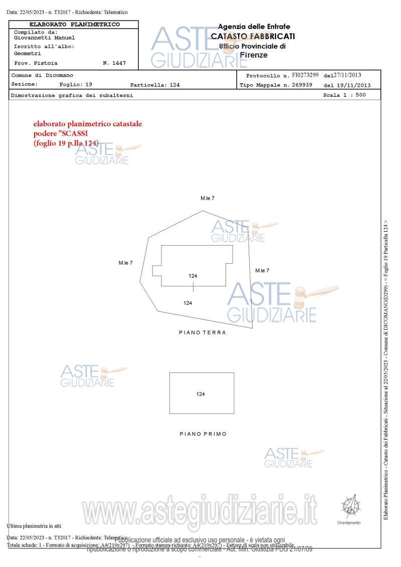 Vendita all'asta Competitiva, con gara telematica sincrona - LOTTO UNICO: Costituito da un unico ed isolato fabbricato allo stato di rudere (ex casa colonica) che si sviluppa sudue piani fuori terra con resede di pertinenza, denominato podere “Scassi”, sito nel Comune diDicomano (FI) e meglio descritto al C.F. del predetto Comune al Foglio 19, particella 124, sup. totale690 mq. Il podere “Scassi” è raggiungibile percorrendo un tratto di strada sterrata (circa 2,2 km),deviando dalla Strada Provinciale n. 551 Traversa del Mugello in Località Rossoio. Prezzo base € 54.400,00 (offerta minima € 49.000,00). Data vendita 05/05/2026 ore 15:00. Curatore Dott. Leonardo Quagliotti - Email "leonardo.quagliotti@unifi.it"; Tel. 0552645871. Rif. Tribunale di Firenze - Liquidazione giudiziale(cci) n. 101/2025
