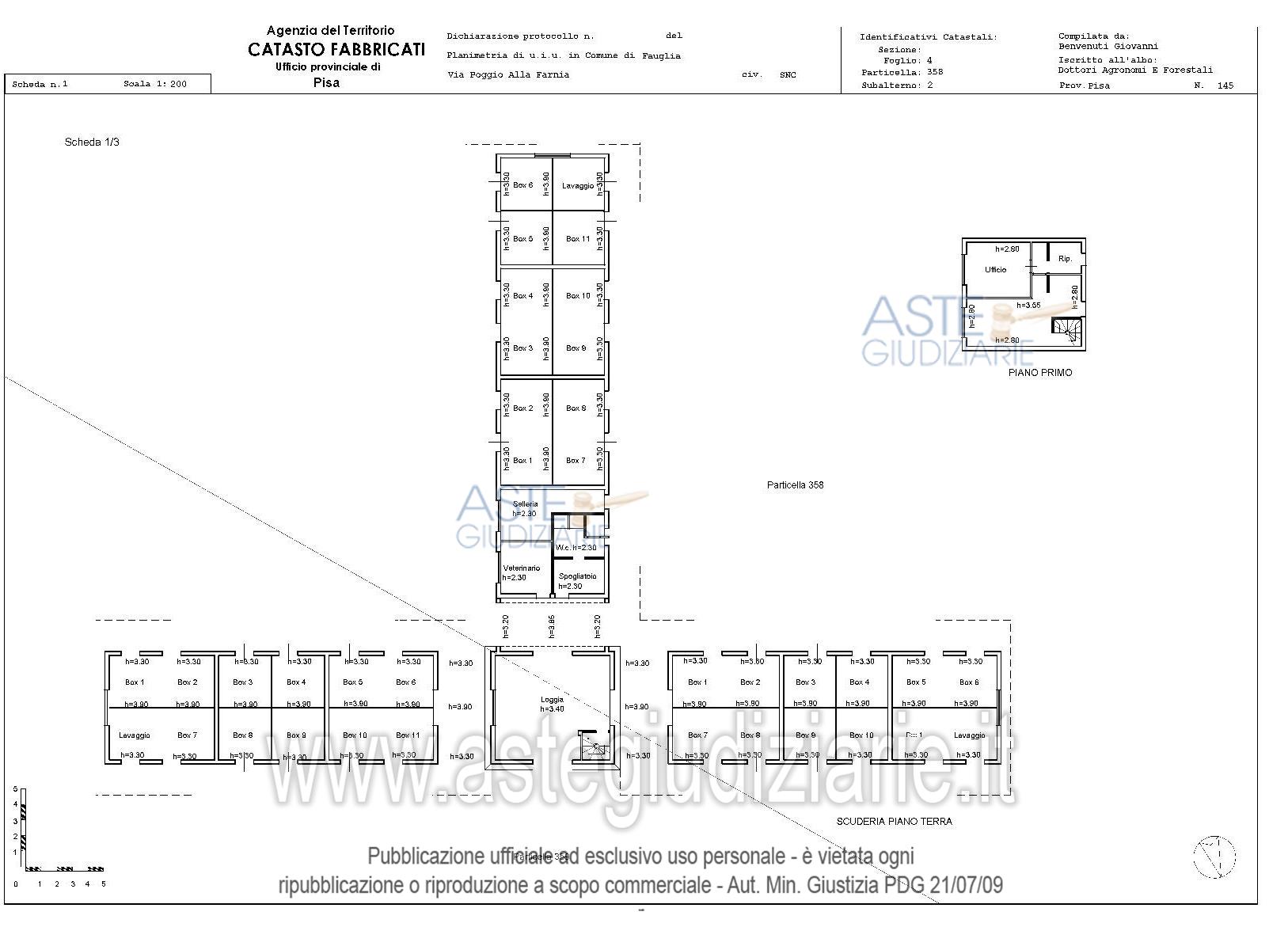 Vendita all'asta Senza incanto, con gara telematica asincrona - LOTTO 1: Complesso immobiliare a destinazione agricola utilizzato per l’allevamento eaddestramento di cavalli costituito da fabbricati di varia natura quali scuderia con annessiservizi ed accessori, giostra per la doma e terreno pertinenziale, oltre ad un fabbricato colonicodi vecchia costruzione disposto su due livelli , un fienile in tralicci metallici privo di coperturacon annessa altro volume in aderenza nonchè terreni agricoli per una estensione complessivadi circa 14 ettari. Prezzo base € 470.000,00 (offerta minima € 352.500,00). Data inizio operazioni di vendita: 05/05/2026 ore 10:00. Giudice Gianmarco Marinai. Custode Giudiziario Dott. Dario Laucci - Email "dario.laucci@guerrinivitti.it"; Tel. 0586896090. Curatore Dott. Dario Laucci - Email "dario.laucci@guerrinivitti.it"; Tel. 0586896090. Rif. Tribunale di Livorno - Fallimentare (nuovo rito) n. 23/2022