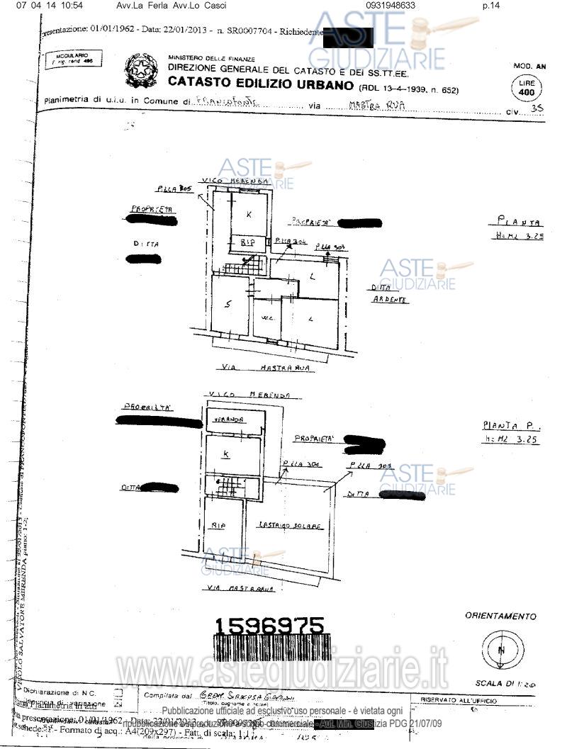 Vendita all'asta Senza incanto - LOTTO UNICO: fabbricato per civile abitazione sito in Francofonte (SR) al Vico Merenda, n. 6, composto da tre vani ed accessori al primo piano, da cucina con veranda aggettante su Via Mastrarua al piano secondo e da un ripostiglio e terrazza aggettante su Via Mastrarua, censito al N.C.E.U. di Francofonte al foglio n.57, mappali graffati 304 sub.2, 5141 sub.2 e 5143 sub. 2, cat. A/3, classe 3, consistenza 7 vani catastali, rendita 614,58. Prezzo base € 17.409,84 (offerta minima € 13.057,38). Data vendita 14/01/2026 ore 12:00. Custode Giudiziario Avv. Claudio Roberto Lo Re - Email "info@avvocatoclaudiolore.it"; Cell. 3202498604; Tel. 0931096479. Rif. Tribunale di Siracusa - Esecuzione immobiliare post legge 80 n. 103/2012