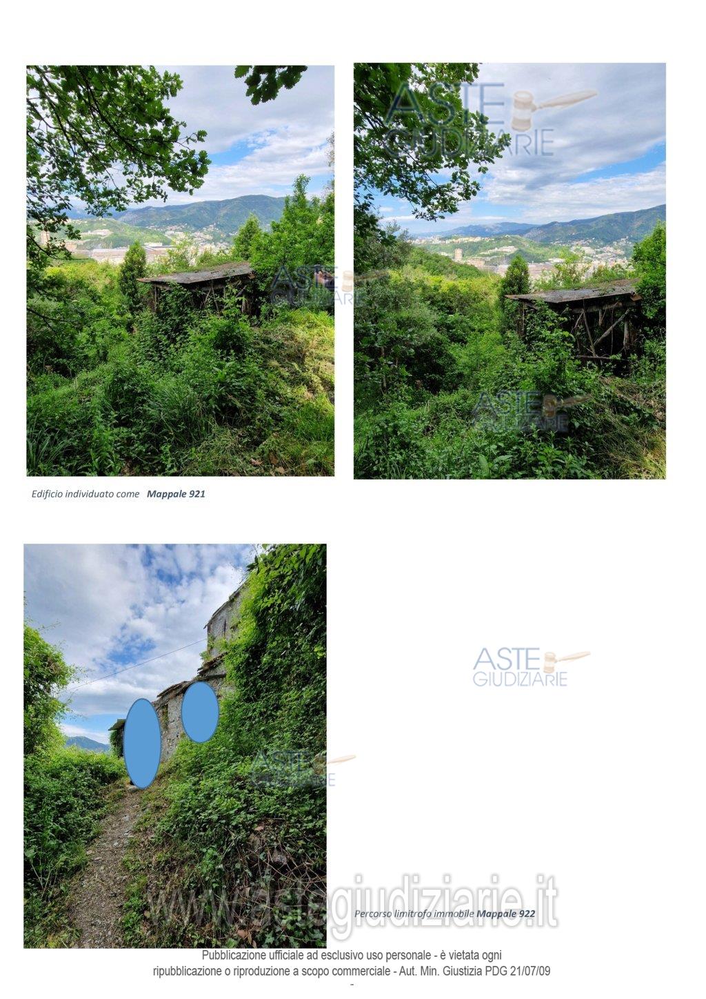 Vendita all'asta Senza incanto, con gara telematica sincrona mista - LOTTO 3: Fabbricato Rurale in Genova, Via B. Bianco 8, ad uso ABITATIVO composto da unità su 2 piani con due subalterni e da un fabbricato separato con mappale graffato al sub. 2. l'immobile al mapp 922 risulta in parziale stato di rudere, il sub. 1 come ricovero attrezzi e stalla in pessime condizioni ed in parte non accessibile; il sub. 2 è inaccessibile in stato di rudere con copertura sfondata. Il fabbricato a stalla (mapp 921) ha pareti in canne lignee e copertura in ondulato, in stato di estremo degrado. Prezzo base € 13.200,00 (offerta minima € 9.900,00). Data vendita 14/11/2025 ore 14:30. Giudice Dott. Chiara Monteleone. Professionista delegato alla vendita Dott. Sebastiano Rezzano - Email "srezzano@studiorezzano.it"; Cell. 3664312477; Tel. 01853118055. Custode Giudiziario Sovemo Srl Bollini Renata - Email "IMMOBILIARE@SOVEMO.COM"; Tel. 0105299253. Rif. Tribunale di Genova - Espropriazione immobiliare (cartabia) n. 526/2023