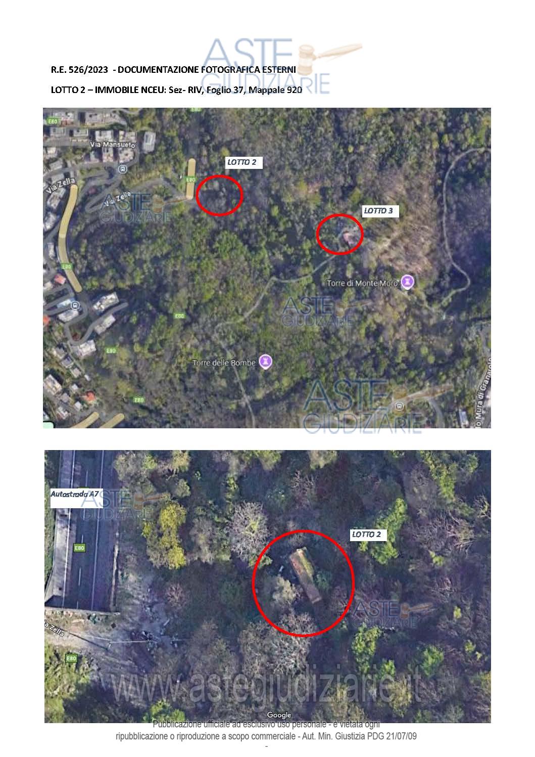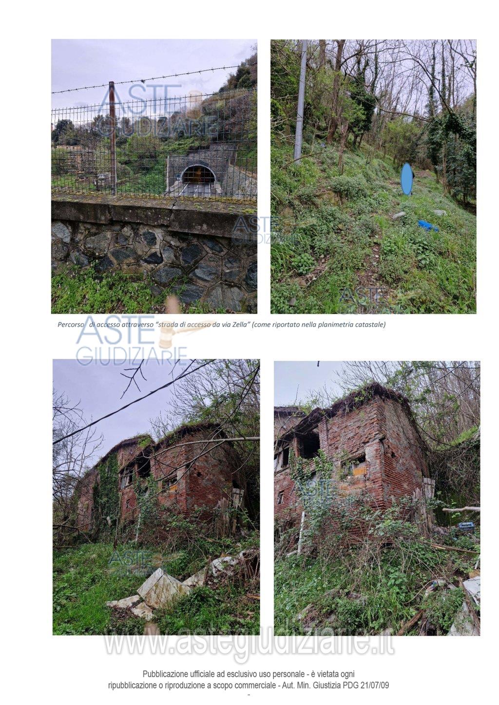 Vendita all'asta Senza incanto, con gara telematica sincrona mista - LOTTO 02: Piena Proprietà di Fabbricato Rurale in Genova (GE), Via Zella 6A, isolato ad uso ABITATIVO. Allo stato rudere, inserito in un’area boschiva senza percorsi pubblici di accesso. Composto di due corpi giustapposti : uno principale a due piani con vani a camere e ripostigli ed uno secondario con ripostigli; non risultano cucina e bagno. L'immobile risulta in parziale stato di rudere con struttura di copertura in parte crollata. Non risulta la dotazione impiantistica per energia elettrica e impianto idrico. Prezzo base € 8.580,00 (offerta minima € 6.435,00). Data vendita 14/11/2025 ore 14:30. Giudice Dott. Chiara Monteleone. Professionista delegato alla vendita Dott. Sebastiano Rezzano - Email "srezzano@studiorezzano.it"; Cell. 3664312477; Tel. 01853118055. Custode Giudiziario Sovemo Srl Bollini Renata - Email "IMMOBILIARE@SOVEMO.COM"; Tel. 0105299253. Rif. Tribunale di Genova - Espropriazione immobiliare (cartabia) n. 526/2023