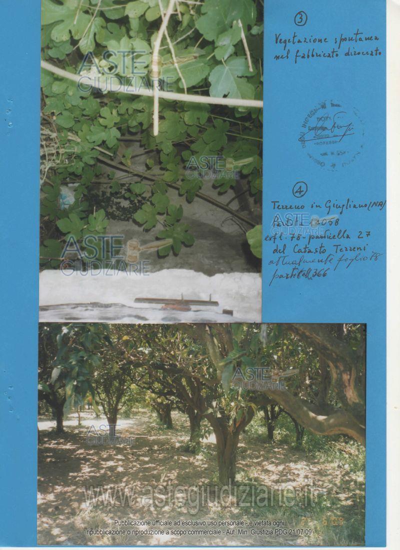 Vendita all'asta Senza incanto - LOTTO 2: Piena proprietà di fondo agricolo con fabbricato e comodi rurali . Prezzo base € 45.000,00 (offerta minima € 33.750,00). Data vendita 14/04/2026 ore 10:00. Giudice Barbara Gargia. Professionista delegato alla vendita Not. Luca Di Lorenzo - Email "notaiodilorenzo@gmail.com". Custode Giudiziario Not. Luca Di Lorenzo - Email "notaiodilorenzo@gmail.com". Rif. Tribunale di Napoli - Contenzioso civile n. 90767/2007