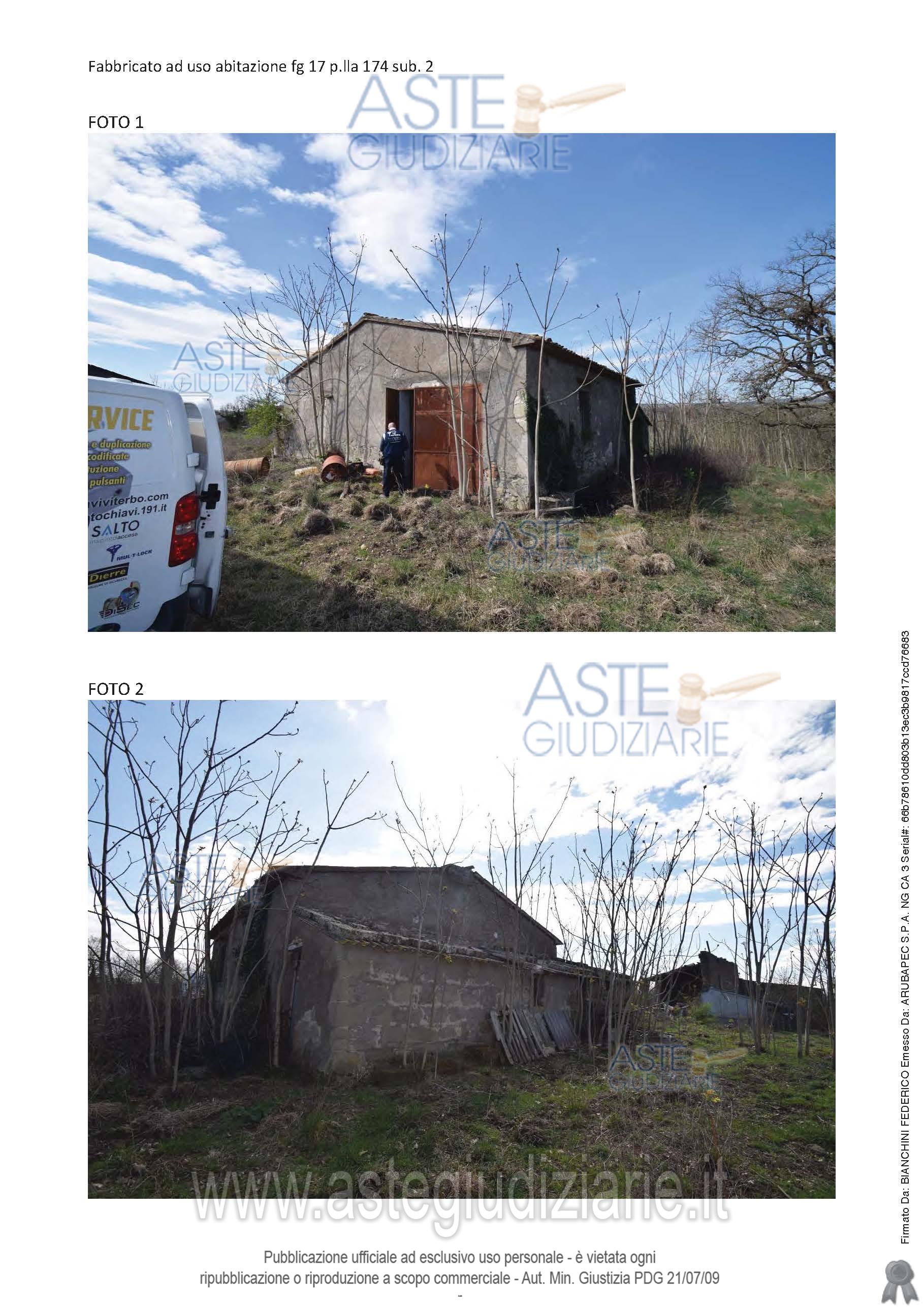 Vendita all'asta Senza incanto, con gara telematica asincrona - LOTTO 1: Complesso immobiliare agricolo costituito da fabbricati e terreni, meglio descritto in avviso di vendita. Prezzo base € 87.478,00 (offerta minima € 65.609,00). Data inizio operazioni di vendita: 15/01/2026 ore 11:00. Professionista delegato alla vendita Not. Biancamaria Ciambella - Email "info@asnoviri.it"; Tel. 0761351236. Custode Giudiziario Not. Biancamaria Ciambella - Email "info@asnoviri.it"; Tel. 0761351236. Rif. Tribunale di Viterbo - Esecuzione immobiliare post legge 80 n. 140/2016