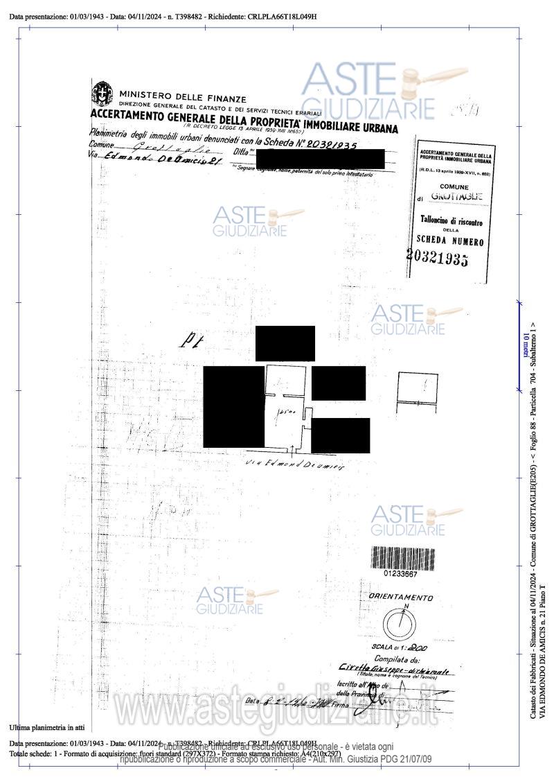 Vendita all'asta Senza incanto, con gara telematica asincrona - LOTTO 1: Piena proprietà dell’immobile, porzione del fabbricato, ubicato a Grottaglie alla via De Amicis n. 21, e precisamente quello posto al piano terra con accesso diretto dalla strada, identificato in catasto fabbricati del Comune di Grottaglie al foglio 88 particella 741 sub.1, con destinazione catastale A/6 “abitazione di tipo rurale”, con superficie commerciale di circa 57 mq. Prezzo base € 12.000,00 (offerta minima € 9.000,00). Data inizio operazioni di vendita: 09/06/2026 ore 16:00. Giudice Dott. Andrea Paiano. Professionista delegato alla vendita Avv. Vita Santoro. Custode Giudiziario Avv. Vita Santoro - Email "santoro.tea@libero.it". Rif. Tribunale di Taranto - Espropriazione immobiliare (cartabia) n. 131/2024