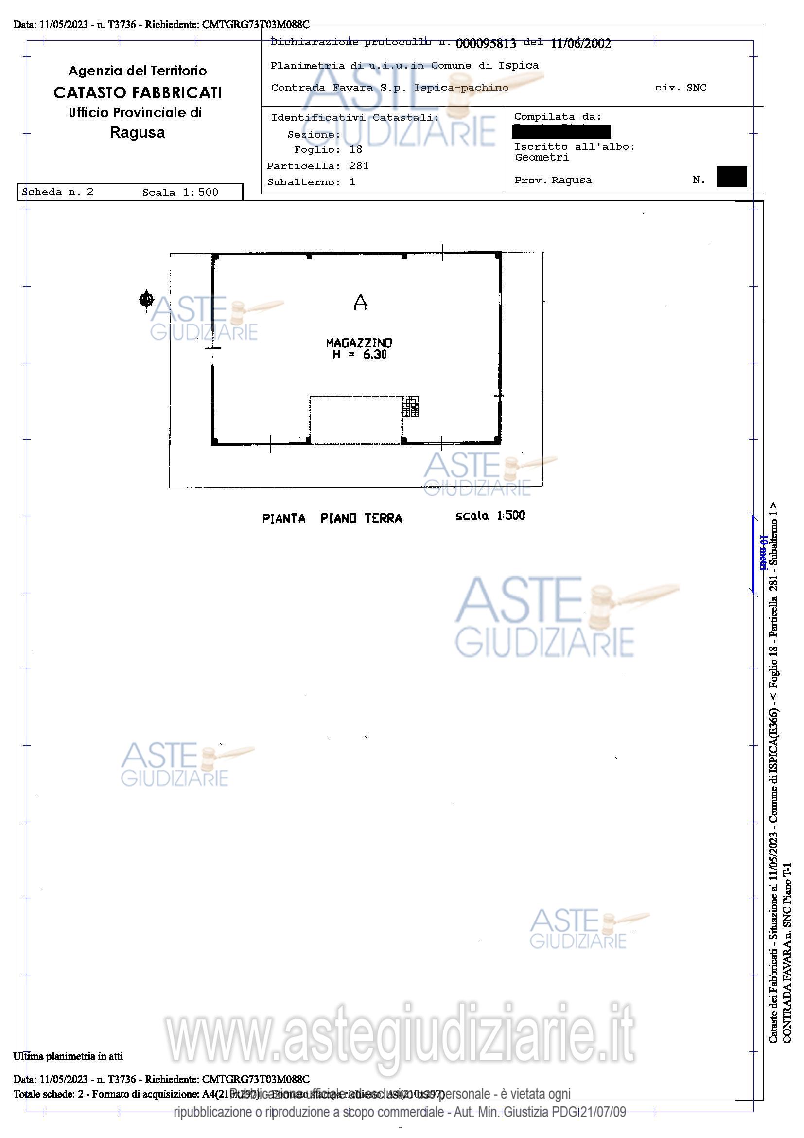 Vendita all'asta Senza incanto, con gara telematica sincrona mista - LOTTO UNICO: Piena proprietà quota 1/1 di un capannone adibito ad attività agricola con annessi uffici realizzato all’interno di un lotto di terreno avente superficie complessiva pari a 9.856,00 mq e sito a Ispica (RG) in c.da Favara s.n.c. Prezzo base € 273.000,00 (offerta minima € 204.750,00). Data vendita 20/11/2025 ore 09:30. Giudice Carlo Di Cataldo. Professionista delegato alla vendita Avv. Eugenia Trovato - Cell. 3208907034; Tel. 09331888120. Custode Giudiziario Avv. Eugenia Trovato - Email "avv.eugeniatrovato@gmail.com"; Cell. 3208907034; Tel. 09331888120. Rif. Tribunale di Ragusa - Espropriazione immobiliare (cartabia) n. 42/2023