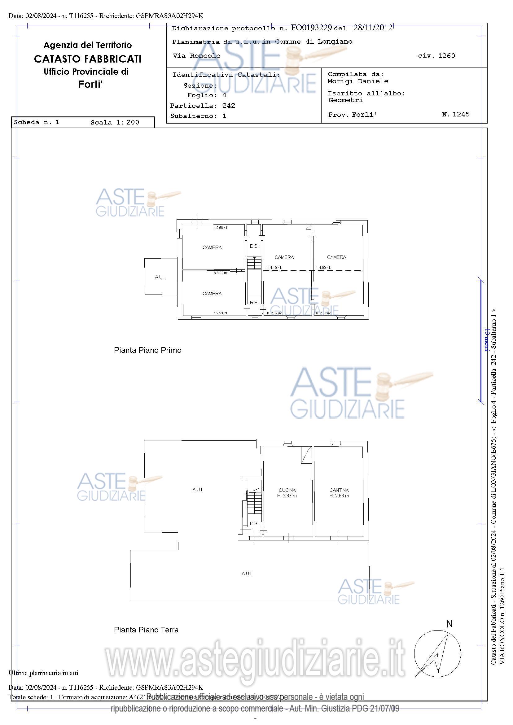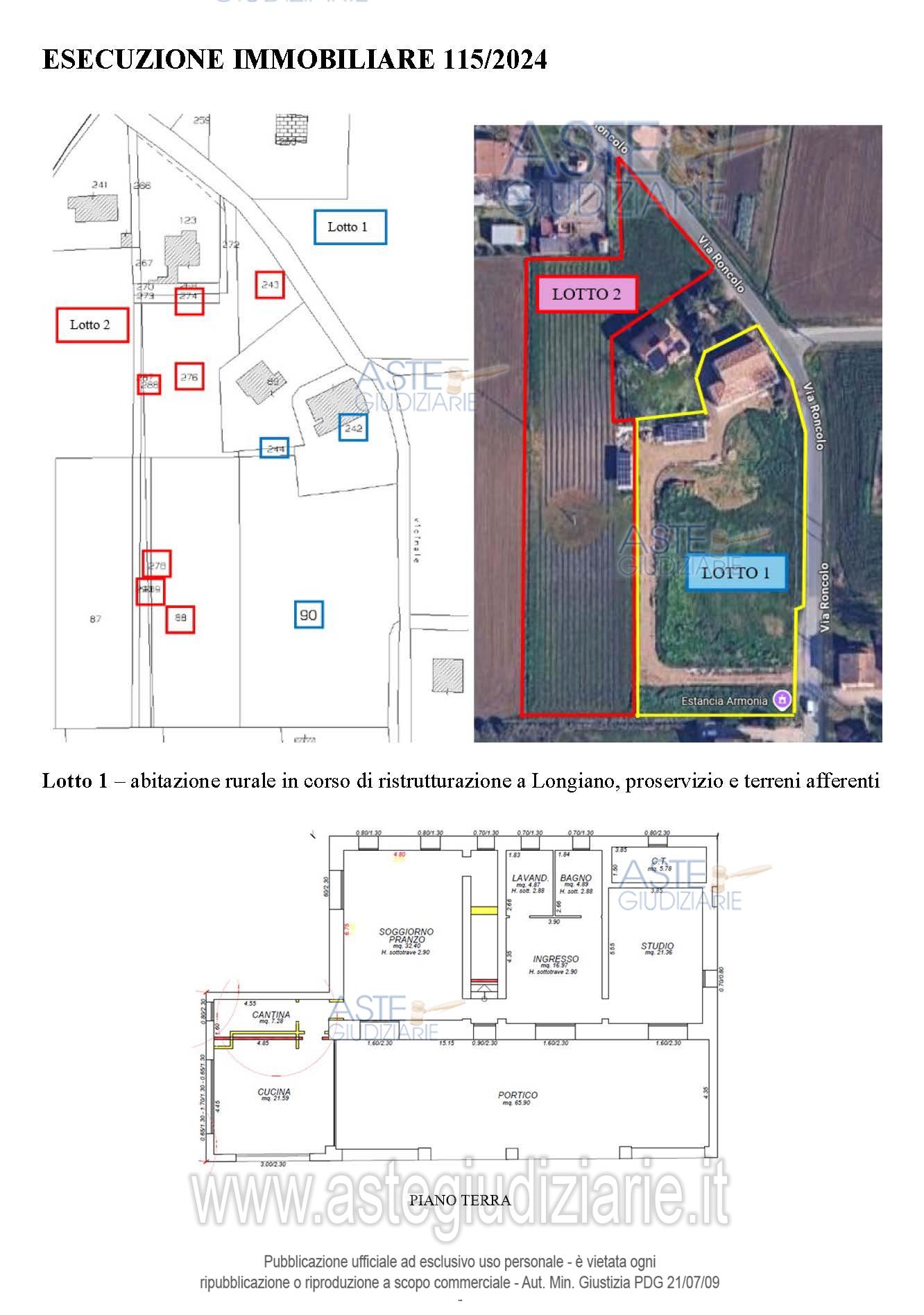 Vendita all'asta Senza incanto, con gara telematica asincrona - LOTTO 1:  piena proprietà in capo all’esecutata di edificio rurale in corso di ristrutturazione e terreno agricolo afferente, sito in Comune di Longiano, Via Roncolo n. 1260. Il compendio consta di un fabbricato in ristrutturazione, di un ricovero auto pergolato e di una porzione di terreno agricolo. Prezzo base € 286.000,00 (offerta minima € 214.500,00). Data inizio operazioni di vendita: 06/11/2025 ore 10:00. Giudice Dott. Danilo Maffa. Professionista delegato alla vendita Avv. Arianna Pollini - Email "arianna_pollini@libero.it"; Cell. 3485657557; Tel. 0547666252. Custode Giudiziario  Rino Fulvio Marchi Ivg Forli' Srl - Email "ivg.forli@gmail.com"; Tel. 0543473480.  Rif. Tribunale di Forlì - Espropriazione immobiliare (cartabia) n. 115/2024