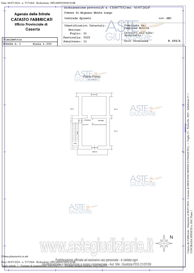 Vendita all'asta Senza incanto - LOTTO UNICO: Appartamento adibito a civile abitazione concorte esterna, distribuito su due livelli, pianoterra e piano primo, rispettivamente censiti alC.F. del Comune di MignanoMonte Lungo al F. 21 Part. 5025 sub 10 esub 11, collegati da una scala interna, incomune con il sub 6; sito nel Comune diMignano M.L. (CE) alla ContradaSpineto, in zona agricola; composto da 2,5vani catastali al piano terra e da 2,5 vani alpiano primo, aventi una consistenzarispettivamente di 78 mq e 74 mq, incluse learee scoperte. Prezzo base € 20.000,00 (offerta minima € 15.000,00). Data vendita 28/05/2026 ore 09:30. Professionista delegato alla vendita Avv. Carlo Cerrito - Email "avv.carlocerrito@gmail.com"; Cell. 3282871703; Tel. 0776403295. Custode Giudiziario Avv. Carlo Cerrito - Email "avv.carlocerrito@gmail.com"; Cell. 3282871703; Tel. 0776403295. Rif. Tribunale di Cassino - Espropriazione immobiliare (cartabia) n. 6/2024