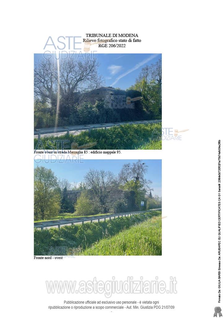 Vendita all'asta Senza incanto, con gara telematica asincrona - LOTTO UNICO: Piena proprietà su lotto di terreno con sovrastanti fabbricati di circa 1052 mq. di superficie commerciale. Il lotto, costeggiato da un fossato che lo rende irraggiungibile dalla pubblica via, è abbandonato, gli edifici sono diruti, con crolli in atto e quindi inaccessibili per motivi di sicurezza, e dovranno essere demoliti e ricostruiti. Parte dei fabbricati sono gravati da “vincolo storico testimoniale del territorio rurale”. Un fabbricato è ancora accatastato come fabbricato rurale. Stato: libero. Prezzo base € 210.000,00 (offerta minima € 157.500,00). Data inizio operazioni di vendita: 07/05/2026 ore 12:30. Professionista delegato alla vendita Avv. Antonella Ferrari - Email "ferrari@avvocatibellesiaferrari.it"; Tel. 059221448. Custode Giudiziario Alex Manelli - Email "visiteimmobili@ivgmodena.it"; Tel. 059847301. Rif. Tribunale di Modena - Esecuzione immobiliare post legge 80 n. 206/2022