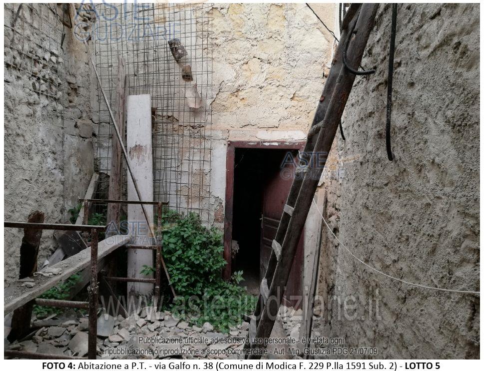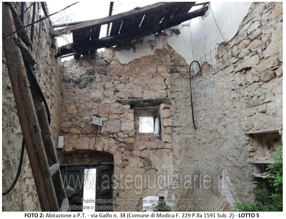 Vendita all'asta Senza incanto, con gara telematica asincrona - LOTTO 5: Rural dwelling. Located on the ground floor of Via Galfo no. 38, in the historic center of Modica. . Prezzo base € 13.500,00 (offerta minima € 13.500,00). Data inizio operazioni di vendita: 06/05/2026 ore 12:00. Giudice Dott. Giovanni Giampiccolo. Curatore Dott. Giuseppe Buscema. Rif. Tribunale di Ragusa ex Tribunale di Modica - Fallimentare n. 1/2010