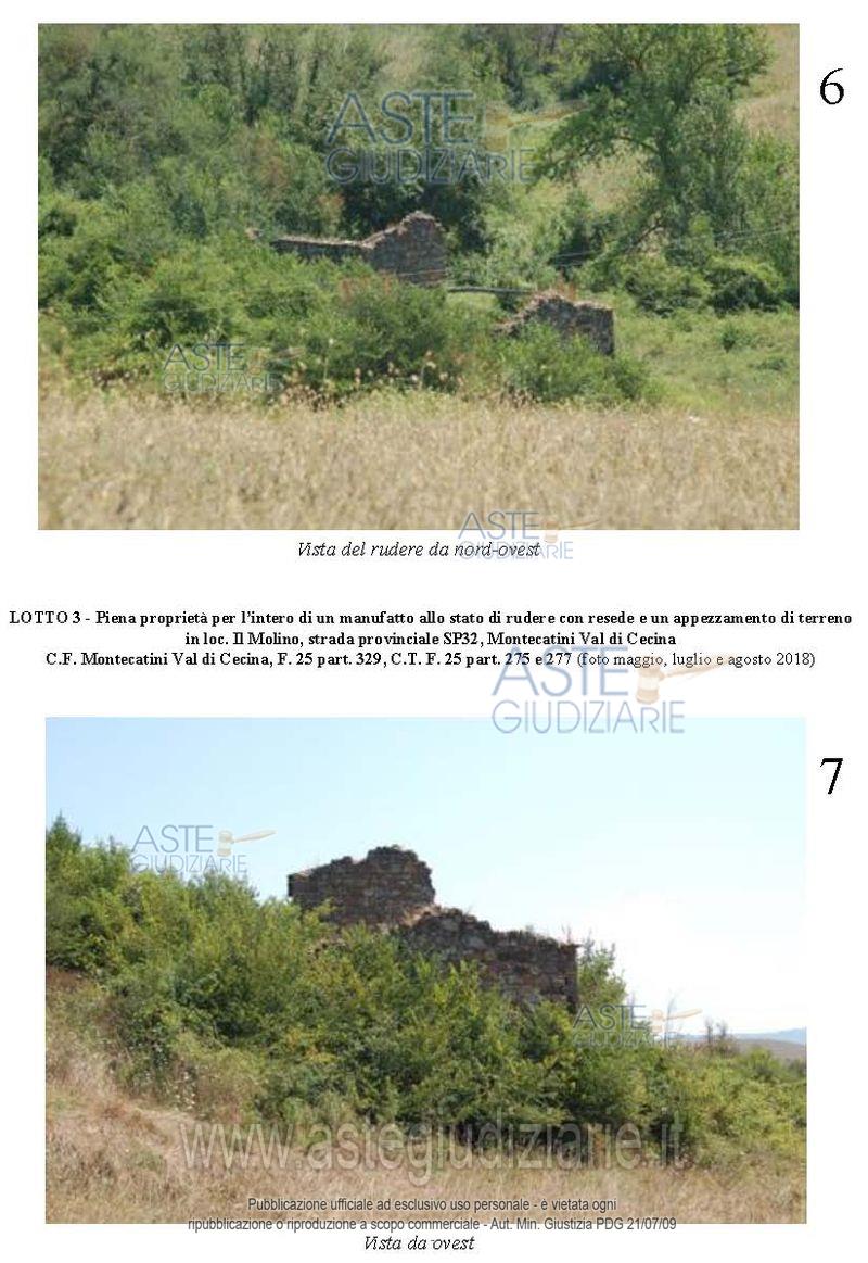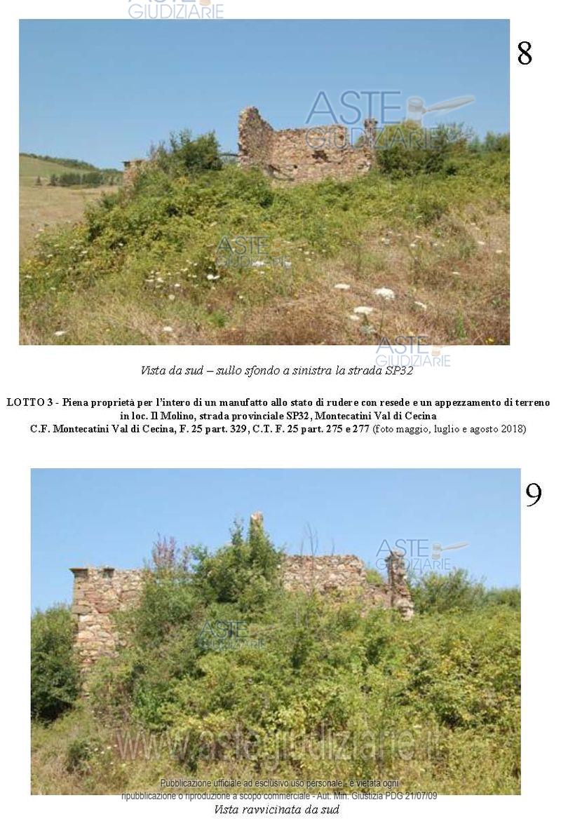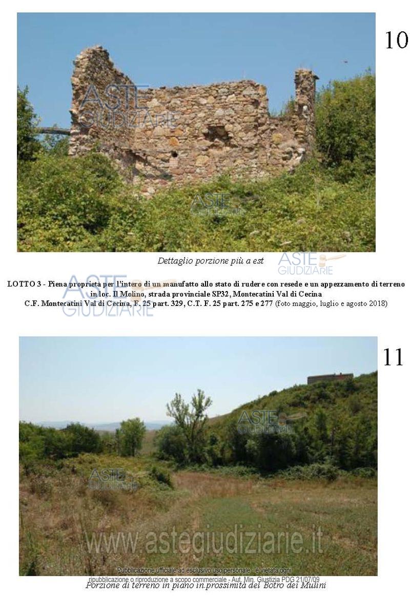 Vendita all'asta Senza incanto, con gara telematica sincrona mista - LOTTO 3: RUDERE COMPOSTO DA UN VECCHIO MULINO CON RESEDE E PICCOLO APPEZZAMENTO DI TERRENO INCOLTO. Prezzo base € 9.000,00 (offerta minima € 6.750,00). Data vendita 28/10/2025 ore 09:30. Giudice Marco Zinna. Professionista delegato alla vendita Dott. Gianpaolo Taccola Vanni - Email "studio@taccolavanni.it"; Tel. 0587635120. Custode Giudiziario Cosimo Erriquez - Email "prenotazionipisa@astagiudiziaria.com"; Cell. 3468748140; Tel. 050554790. Rif. Tribunale di Pisa - Esecuzione immobiliare post legge 80 n. 248/2017