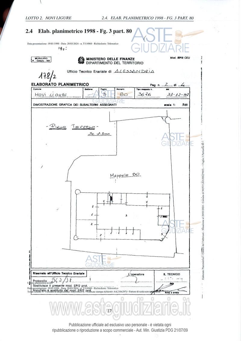 Vendita all'asta Senza incanto - LOTTO UNICO: Insediamento ex rurale mq 1.300, 4 corpi di fabbrica con cortile recintato. Le parti ex abitative(h.int.da mt.2,80 a mt.3,80) sono costituite da 1 fabbricato a 3 piani f.t. con 2 camere per piano e scala int.; il 2°caseggiato è composto da 1 camera per piano e da locale di sgombero al p.terra sovrastato da portico.Il resto è destinato a portico e locali di sgombero;la manica di edificio a nord-est è senza copertura;al p. 1° ci sono i soli pilastri.Al porticato a sud-ovest è stata rifatta la copertura. Prezzo base € 40.782,00 (offerta minima € 30.586,50). Data vendita 13/01/2026 ore 09:30. Giudice Elisabetta Bianco. Professionista delegato alla vendita Avv. Francesco Mercuri - Email "avv.fmercuri@gmail.com"; Cell. 3480322585; Tel. 01311852246. Custode Giudiziario Avv. Francesco Mercuri - Email "avv.fmercuri@gmail.com"; Cell. 3480322585; Tel. 01311852246. Rif. Tribunale di Alessandria - Esecuzione immobiliare post legge 80 n. 355/2017