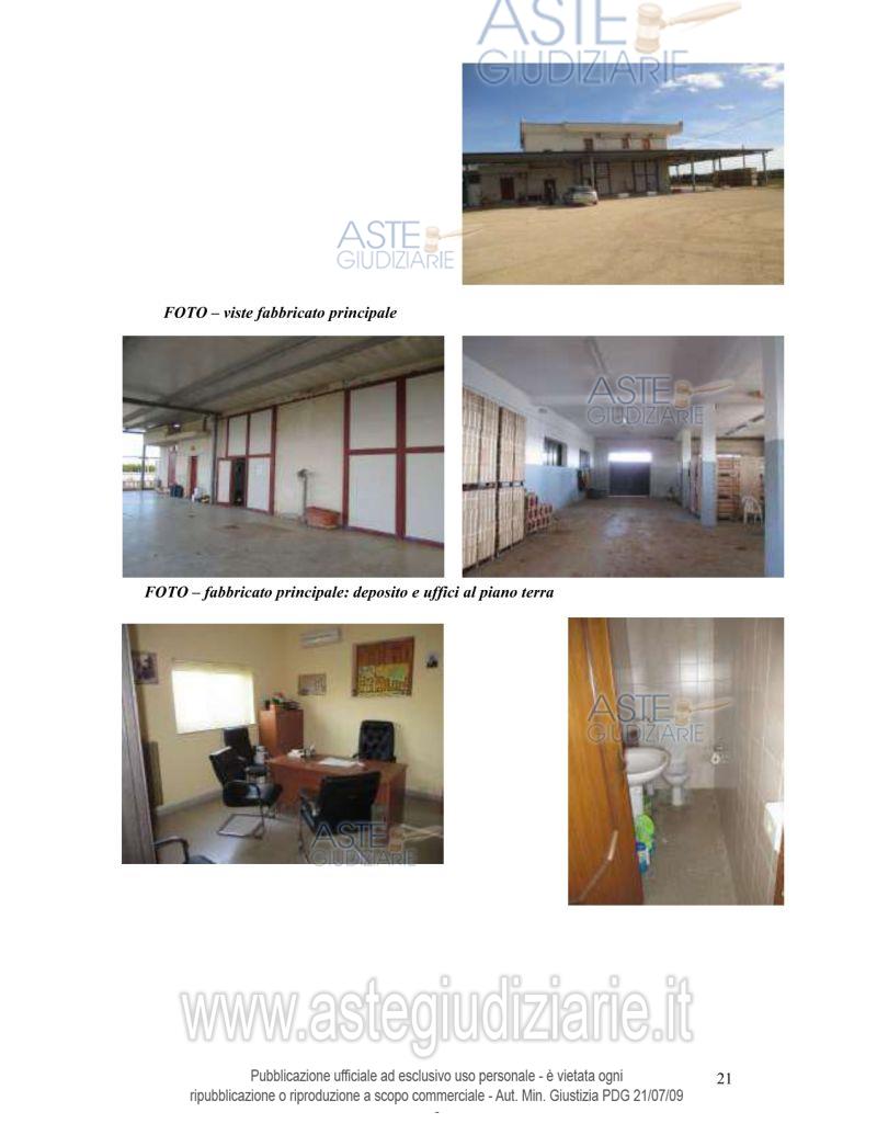 Vendita all'asta Senza incanto, con gara telematica asincrona - LOTTO 2: Piena proprietà del compendio immobiliare composto da un fondo rustico di ha 7.03.31 catastali e da un’area adiacente di ha 1.32.10 con soprastanti magazzini e depositi solo in parte autorizzati (in altra parte da demolire) per 1.847,45 mq al piano terra, oltre a una pensilina metallica di 56,40 mq e un alloggio al primo piano di 168,70 mq. Prezzo base € 450.622,00 (offerta minima € 337.967,00). Data inizio operazioni di vendita: 09/06/2026 ore 16:00. Giudice Dott. Andrea Paiano. Professionista delegato alla vendita Avv. Dario Lupo - Email "avvocato@dariolupo.it"; Tel. 099373040. Custode Giudiziario Avv. Dario Lupo - Email "avvocato@dariolupo.it"; Tel. 099373040. Rif. Tribunale di Taranto - Esecuzione immobiliare post legge 80 n. 355/2018
