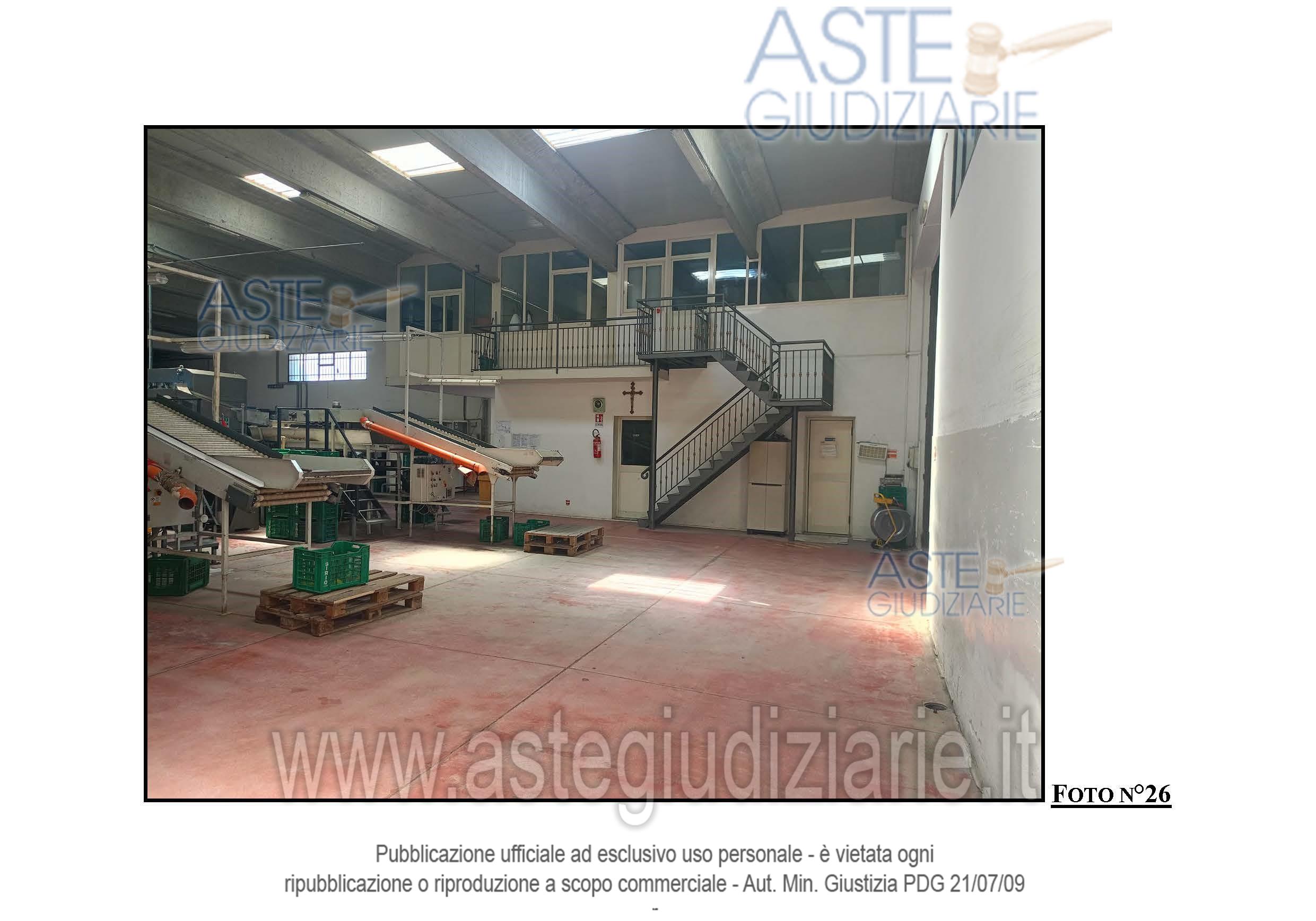 Vendita all'asta Senza incanto, con gara telematica sincrona mista - LOTTO 1: Fabbricato adibito alla commercializzazione di prodotti agricoli - Locale artigianale e particelle di terreni. Prezzo base € 416.000,00 (offerta minima € 312.000,00). Data vendita 27/05/2026 ore 16:30. Giudice: Dott. Oriana Calvo.