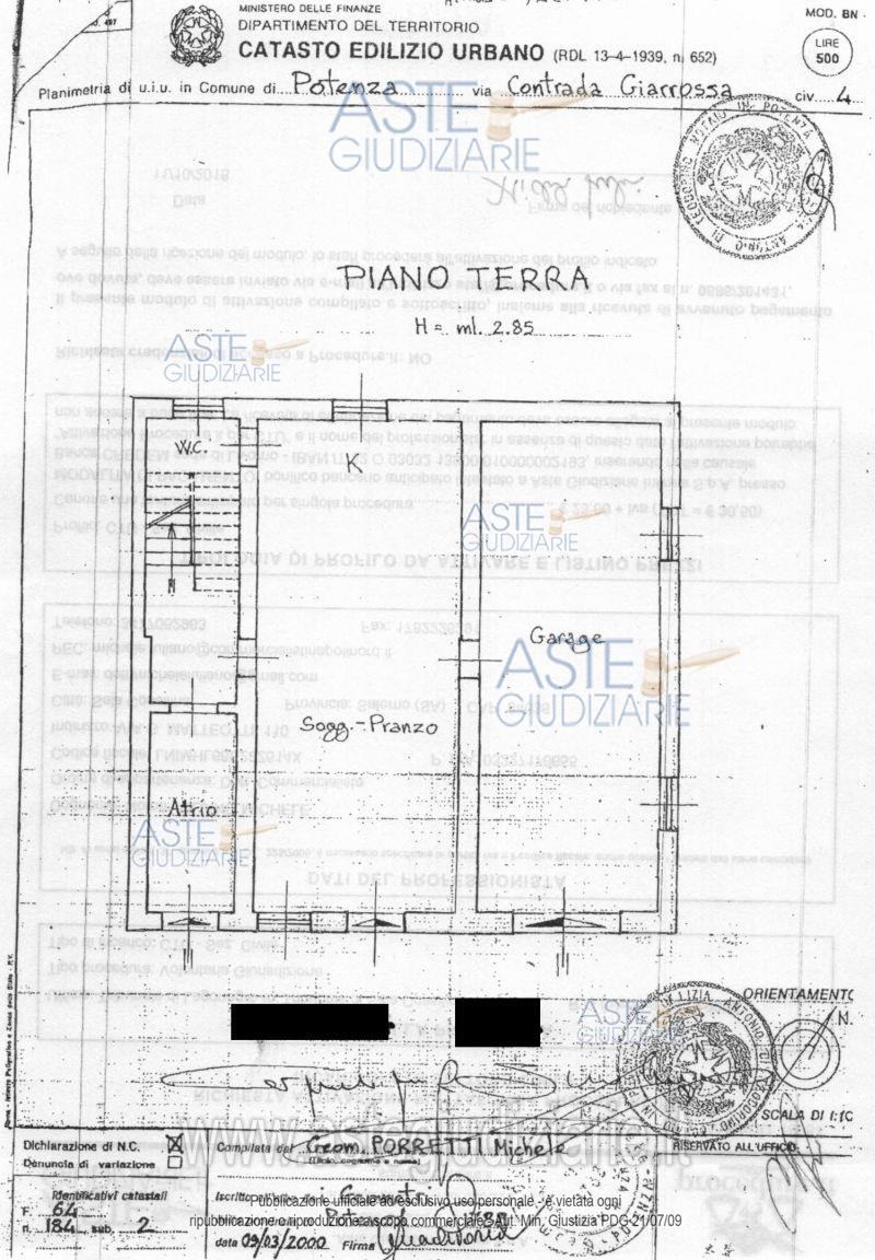 Vendita all'asta Senza incanto - LOTTO UNICO: Piena ed intera proprietà dell’immobile ad uso abitativo sito nel Comune di Potenza alla Contrada Giarrossa n.4, posto su due livelli (piano terra e primo). Prezzo base € 25.440,84 (offerta minima € 19.080,63). Data vendita 31/03/2026 ore 11:30. Giudice Angela Alborino. Professionista delegato alla vendita Dott. Michele Iuliano - Email "dott.micheleiuliano@gmail.com"; Cell. 3477062963; Tel. 0818141646. Custode Giudiziario Dott. Michele Iuliano - Email "dott.micheleiuliano@gmail.com"; Cell. 3477062963; Tel. 0818141646. Rif. Tribunale di Potenza - Esecuzione immobiliare post legge 80 n. 24/2004
