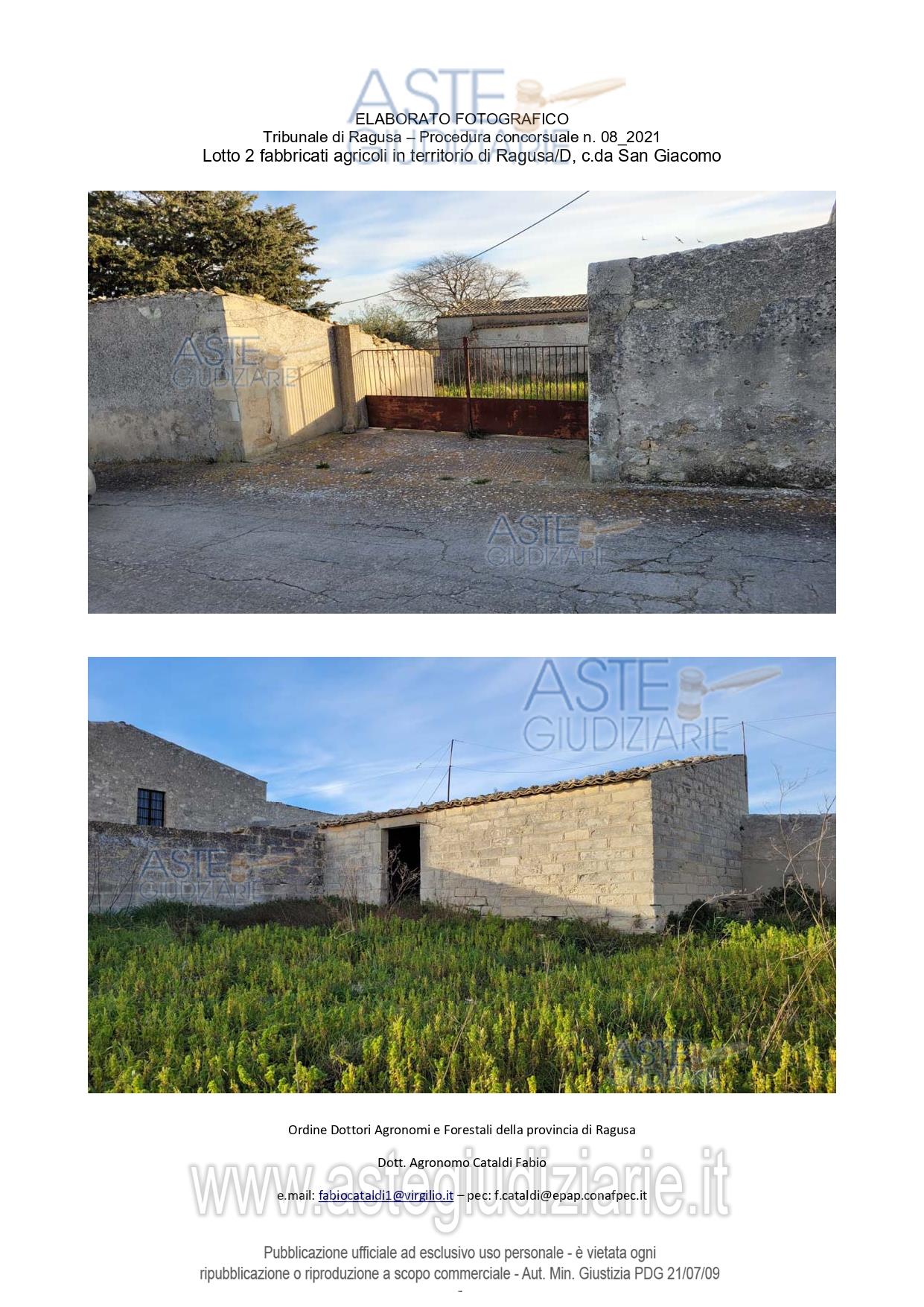 Vendita all'asta Senza incanto, con gara telematica sincrona mista - LOTTO 2: Diritto di piena proprietà su fabbricati strumentali in agro cat. D10 (utilizzabili per fini agricoli), censiti al NCEU Ragusa sez. D Noto al Foglio 409 particella 861. All’interno della particella catastale sono presenti quattro corpi con una superficie complessiva di mq 373. La superficie non edificata (cortile), invece, è pari a mq 447. Prezzo base € 17.172,50 (offerta minima € 12.879,38). Data vendita 31/03/2026 ore 10:30. Giudice Dott. Antonio Pianoforte. Curatore Avv. Elisabetta Cilia - Email "elisabetta.m.cilia@gmail.com"; Cell. 3381948104. Rif. Tribunale di Ragusa - Liquidazione del patrimonio del debitore n. 8/2021