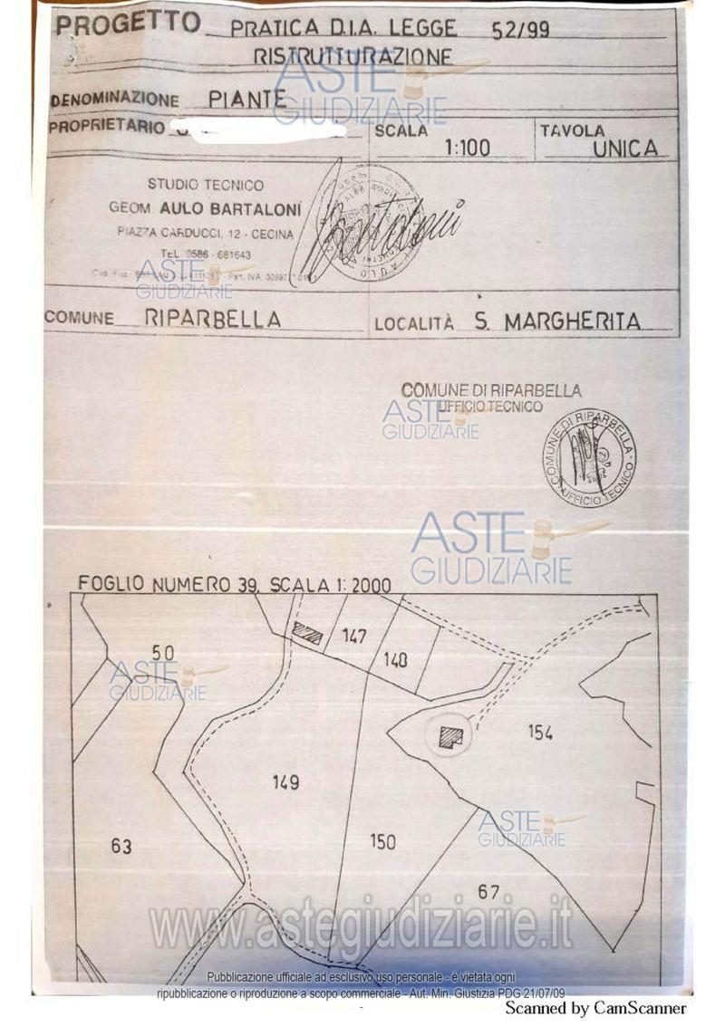 Vendita all'asta Senza incanto, con gara telematica asincrona - LOTTO UNICO: Compendio immobiliare agricolo posto nel Comune di Riparbella, Val di Lopia, Loc. Santa Margherita n° 2/B, composto da un fabbricato terra tetto destinato al piano primo a civile abitazione, al piano terreno ad uso magazzino, oltre a tettoia ed un forno posti sulla corte pertinenziale, sono inoltre compresi vari terreni agricoli per una superficie catastale totale di 219.220 mq. Prezzo base € 145.548,00 (offerta minima € 109.161,00). Data inizio operazioni di vendita: 19/05/2026 ore 11:00. Giudice Elisa Pinna. Professionista delegato alla vendita Rag. Alessandra Rusciano. Custode Giudiziario Rag. Alessandra Rusciano - Email "alessandra.rusciano@scapuzzirusciano.it"; Tel. 0586892300. Rif. Tribunale di Livorno - Esecuzione immobiliare post legge 80 n. 248/2017