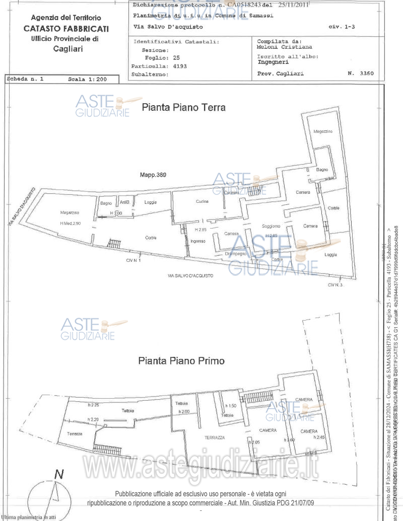 Vendita all'asta Senza incanto, con gara telematica asincrona - LOTTO UNICO: Diritto di proprietà per la quota pari all’intero del fabbricato ad uso civile abitazione disposto su due livelli con accesso da Vico Primo di via Salvo D’Acquisto n. 1-3, composto da: corte, magazzino, bagno, cucina, disimpegno, soggiorno, due camere (di cui una con bagno padronale), una seconda corte, loggiato, magazzino al piano terra; tre camere al piano primo. Prezzo base € 51.900,00 (offerta minima € 38.925,00). Data inizio operazioni di vendita: 30/01/2026 ore 11:00. Giudice Silvia Cocco. Professionista delegato alla vendita Dott. Antonio Garau - Email "ufficiouniconotai@pec.it"; Tel. 07060222574. Custode Giudiziario Ivg Cagliari - Email "ivg.visiteimmobili@tiscali.it"; Tel. 0702299036. Rif. Tribunale di Cagliari - Esecuzione immobiliare post legge 80 n. 486/2004