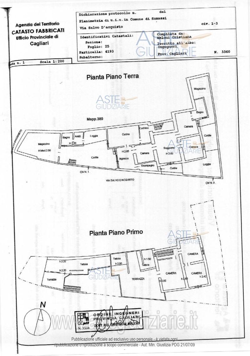 Vendita all'asta Senza incanto, con gara telematica asincrona - LOTTO UNICO: Diritto di proprietà per la quota pari all’intero del fabbricato ad uso civile abitazione disposto su due livelli con accesso da Vico Primo di via Salvo D’Acquisto n. 1-3, composto da: corte, magazzino, bagno, cucina, disimpegno, soggiorno, due camere (di cui una con bagno padronale), una seconda corte, loggiato, magazzino al piano terra; tre camere al piano primo. Prezzo base € 41.520,00 (offerta minima € 31.140,00). Data inizio operazioni di vendita: 10/04/2026 ore 11:00. Giudice Silvia Cocco. Professionista delegato alla vendita Dott. Antonio Garau - Email "ufficiouniconotai@pec.it"; Tel. 07060222574. Custode Giudiziario Ivg Cagliari - Email "ivg.visiteimmobili@tiscali.it"; Tel. 0702299036. Rif. Tribunale di Cagliari - Esecuzione immobiliare post legge 80 n. 486/2004