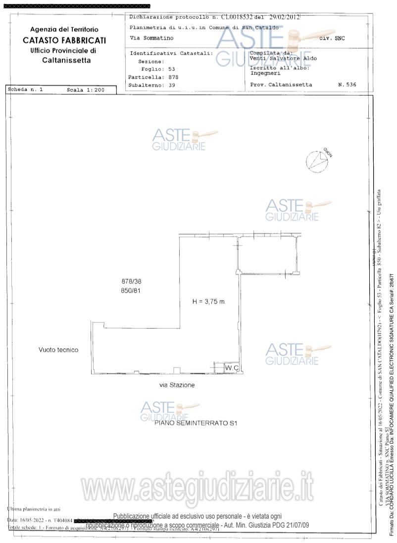 Vendita in attesa dell'emissione del nuovo bando d'asta. LOTTO 2: Locale commerciale alpiano terra seminterrato di un fabbricato per civile abitazione. Ultimo prezzo base € 79.350,00 (offerta minima € 59.520,00). Professionista delegato alla vendita Avv. Salvatore Alletto. Custode Giudiziario Avv. Salvatore Alletto - Email "avvocatiallettoeturco@hotmail.it". Rif. Tribunale di Caltanissetta - Esecuzione immobiliare post legge 80 n. 25/2021