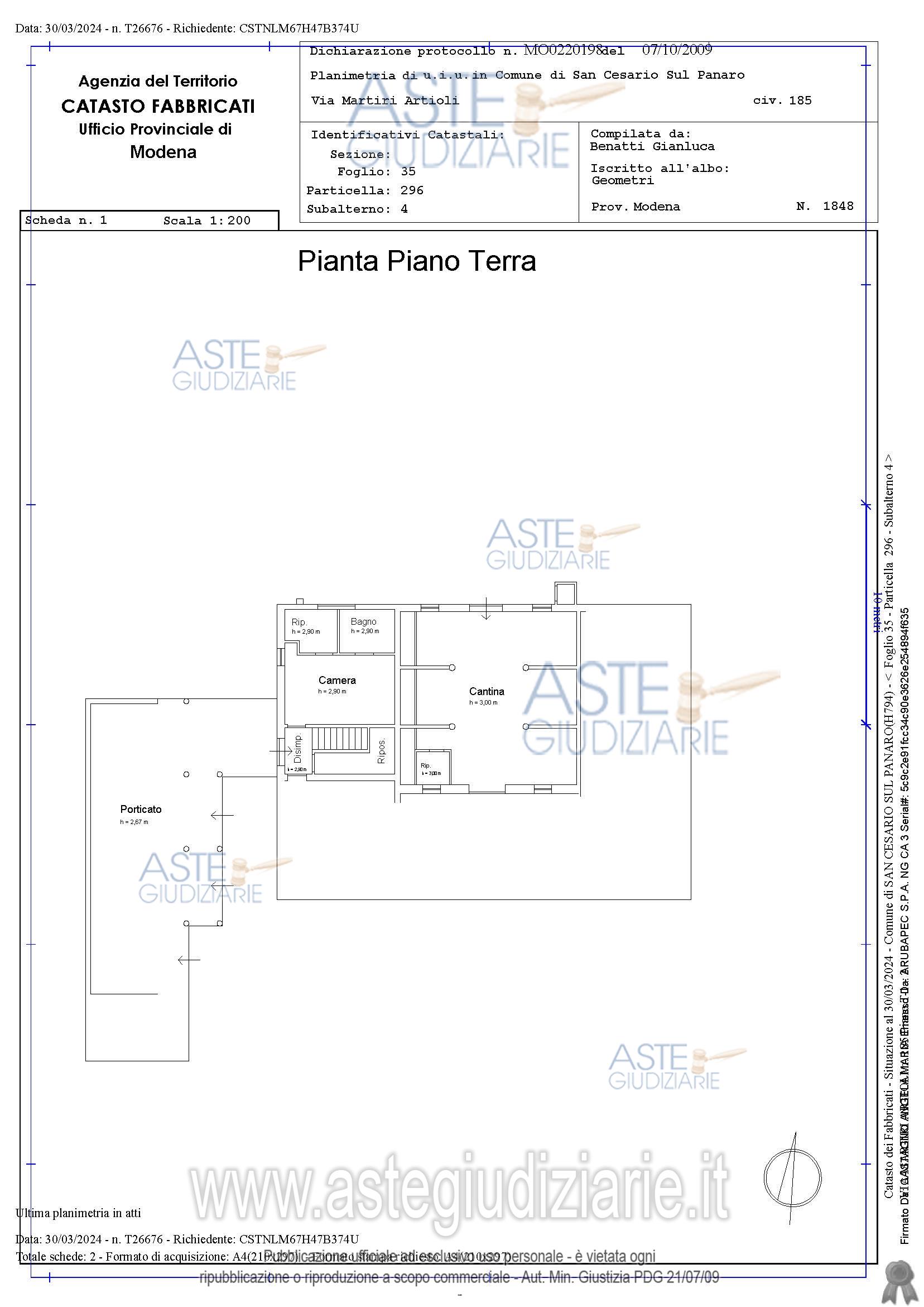 Vendita all'asta Senza incanto, con gara telematica asincrona - LOTTO UNICO: piena proprietà di complesso agricolo in s. Cesario sul Panaro con annessi due terreni; l'accesso principale è posto su via Martiri Artioli 1243; edificio a residenza rurale così suddivisa: Piano T: Il Portico si collega con l’interno della casa così distribuita: Piano terra: disimpegno, camera, bagno, ripostiglio, vano scala, stalla. Piano I°: 2 camere, bagno. Piano II°: 2 camere. Bassocomodo: composto al piano T. da cantina, forno, ripostiglio. Al piano primo 3 vani ad uso ripostiglio. Prezzo base € 134.100,00 (offerta minima € 100.575,00). Data inizio operazioni di vendita: 11/11/2025 ore 10:30. Professionista delegato alla vendita Avv. Elena Silingardi - Email "elena.silingardi@gmail.com"; Tel. 05361812428. Custode Giudiziario Alex Manelli - Email "visiteimmobili@ivgmodena.it"; Tel. 059847301. Rif. Tribunale di Modena - Esecuzione immobiliare post legge 80 n. 46/2023