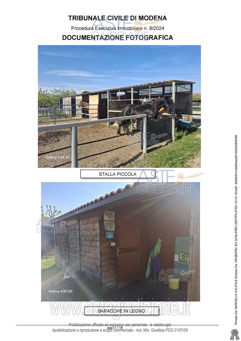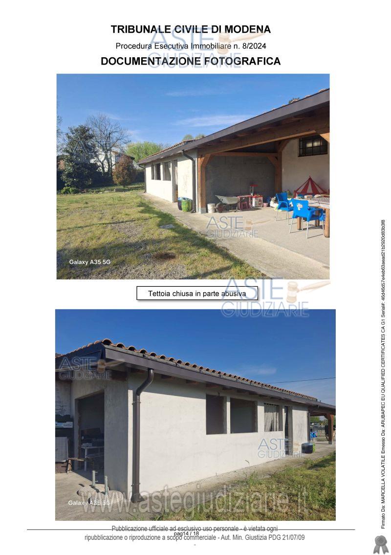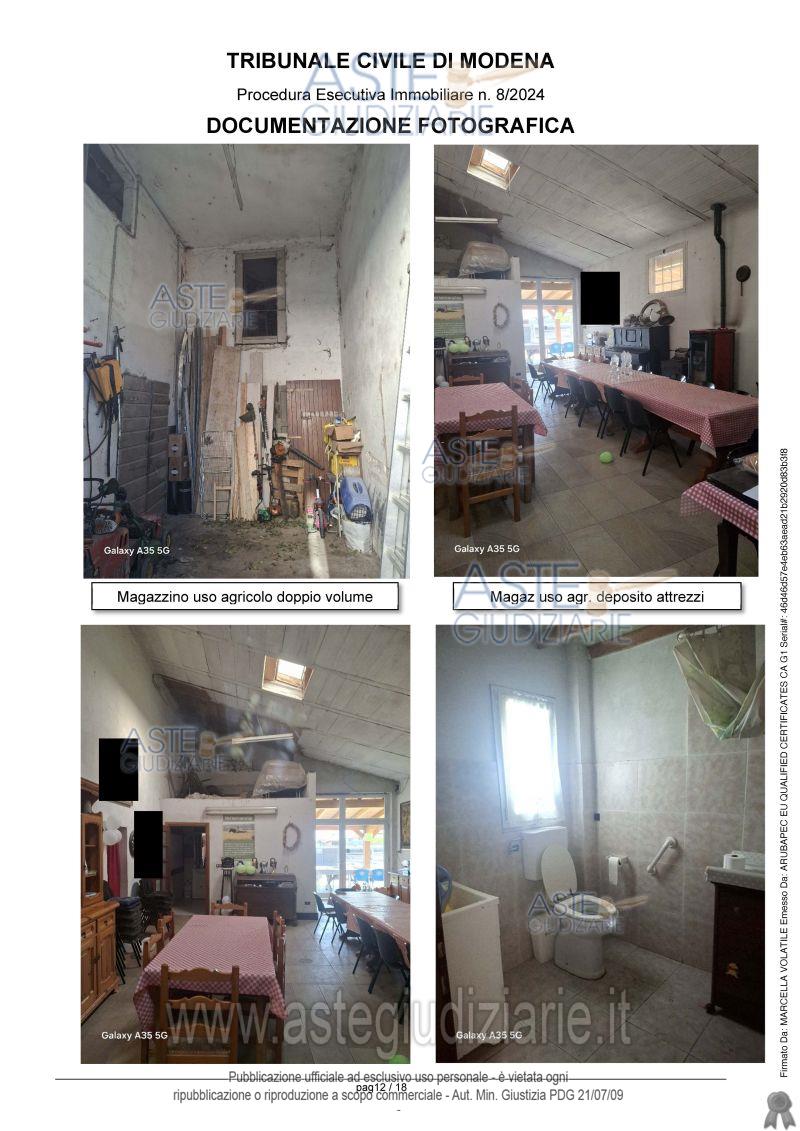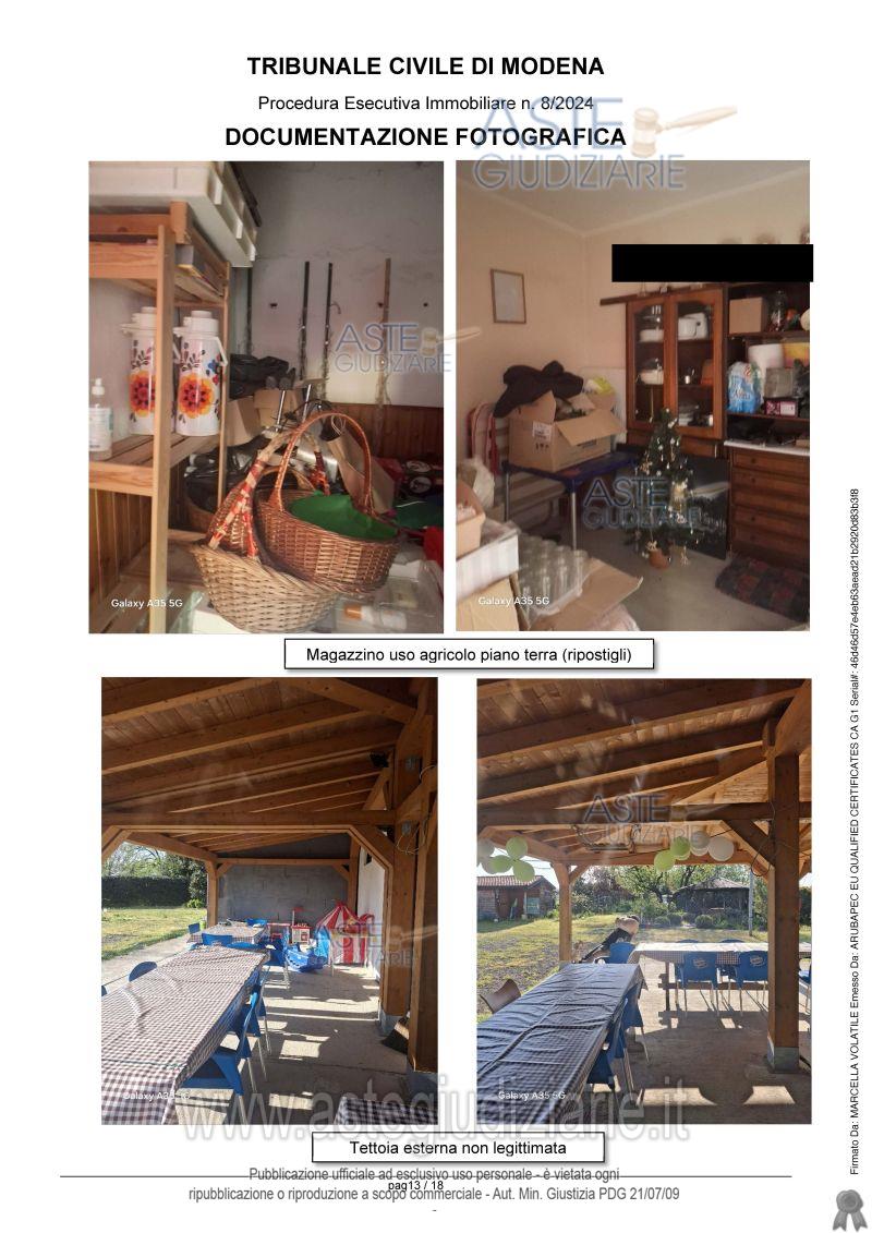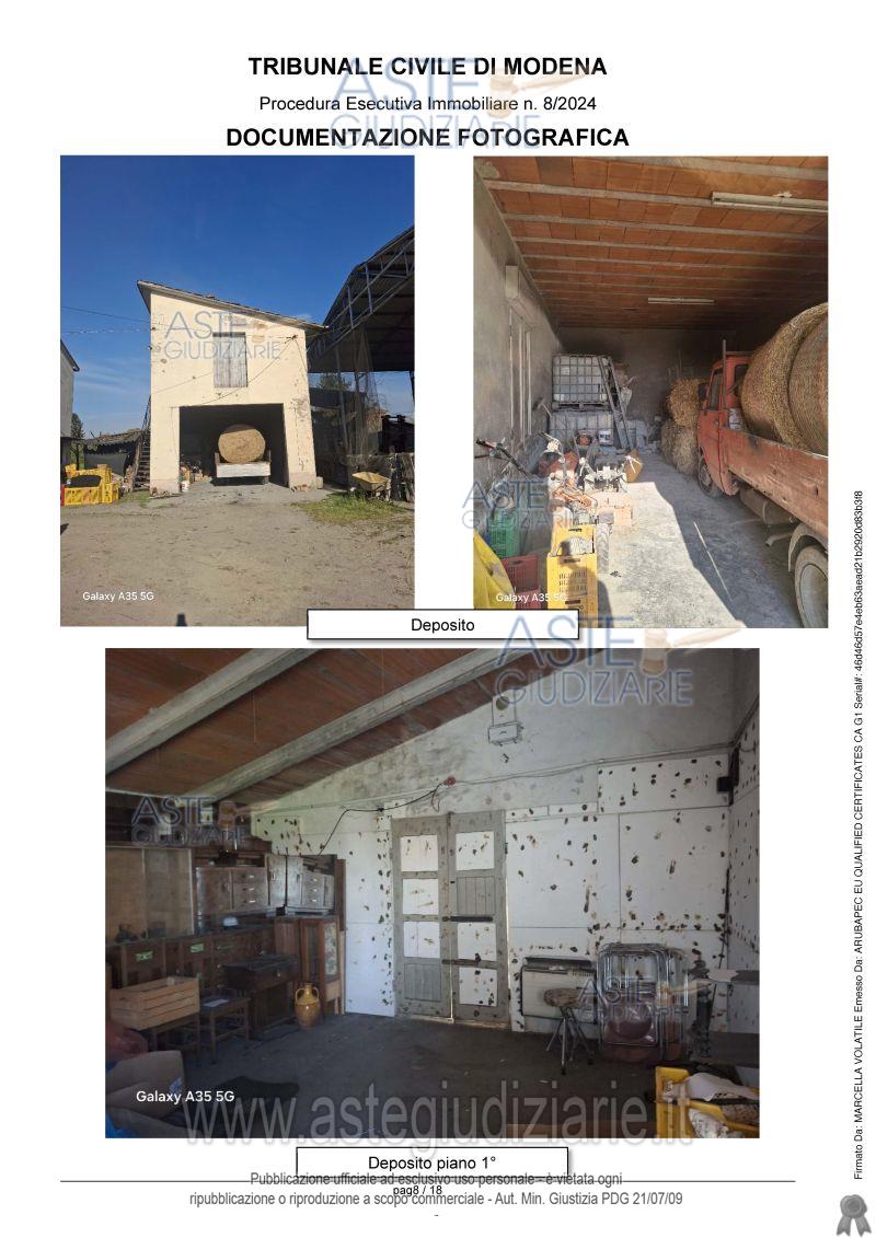 Vendita all'asta Senza incanto, con gara telematica asincrona - LOTTO UNICO: Complesso rurale costituito da: edificio costituito da due abitazioni con cantina; edificio ad uso agricolo; magazzino su due livelli; diversi appezzamenti di terreno. Da perizia, lo stato dei luoghi presenta ulteriori diversi manufatti abusivi tra cui una tettoia ad uso ricovero attrezzi/messi, due stalle, due recinti per cavalli e diverse casette in legno, oltre ad un laghetto artificiale. Prezzo base € 920.000,00 (offerta minima € 690.000,00). Data inizio operazioni di vendita: 26/05/2026 ore 16:00. Giudice Dott. Umberto Ausiello. Professionista delegato alla vendita Avv. Avv. Saverio Casadonte - Email "saveriocasadonte@yahoo.it"; Cell. 3285864404. Custode Giudiziario Alex Manelli - Email "visiteimmobili@ivgmodena.it"; Tel. 059847301. Rif. Tribunale di Modena - Espropriazione immobiliare (cartabia) n. 8/2024