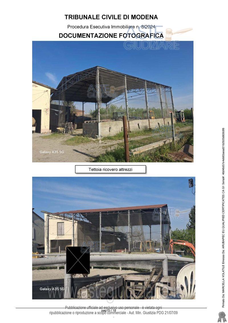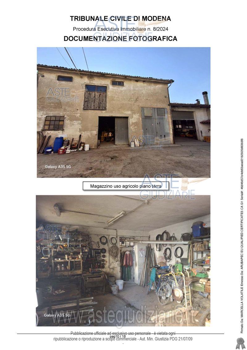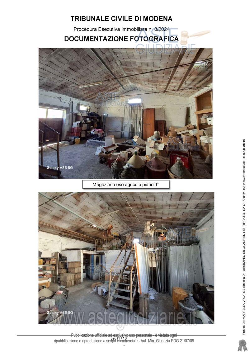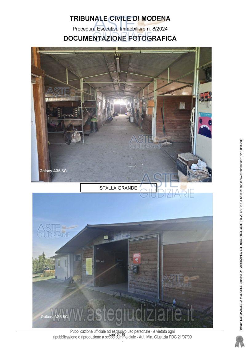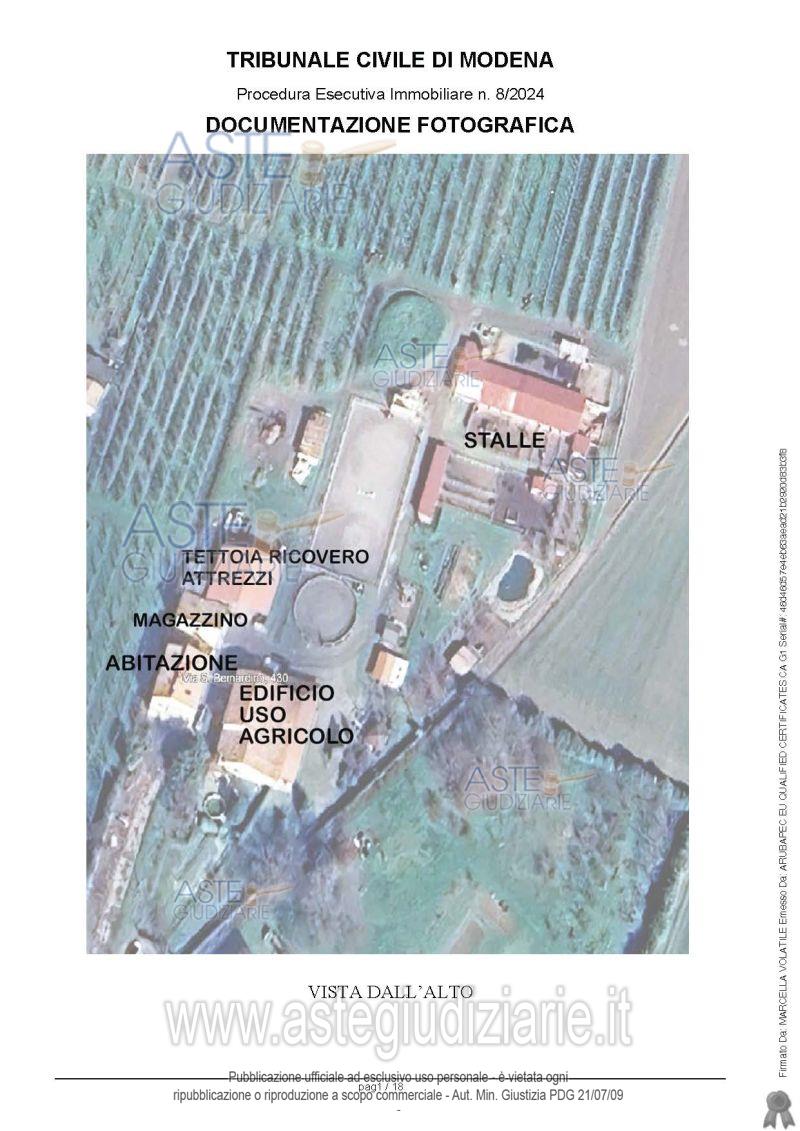 Vendita all'asta Senza incanto, con gara telematica asincrona - LOTTO UNICO: Complesso rurale costituito da: edificio costituito da due abitazioni con cantina; edificio ad uso agricolo; magazzino su due livelli; diversi appezzamenti di terreno. Da perizia, lo stato dei luoghi presenta ulteriori diversi manufatti abusivi tra cui una tettoia ad uso ricovero attrezzi/messi, due stalle, due recinti per cavalli e diverse casette in legno, oltre ad un laghetto artificiale. Prezzo base € 920.000,00 (offerta minima € 690.000,00). Data inizio operazioni di vendita: 26/05/2026 ore 16:00. Giudice Dott. Umberto Ausiello. Professionista delegato alla vendita Avv. Avv. Saverio Casadonte - Email "saveriocasadonte@yahoo.it"; Cell. 3285864404. Custode Giudiziario Alex Manelli - Email "visiteimmobili@ivgmodena.it"; Tel. 059847301. Rif. Tribunale di Modena - Espropriazione immobiliare (cartabia) n. 8/2024
