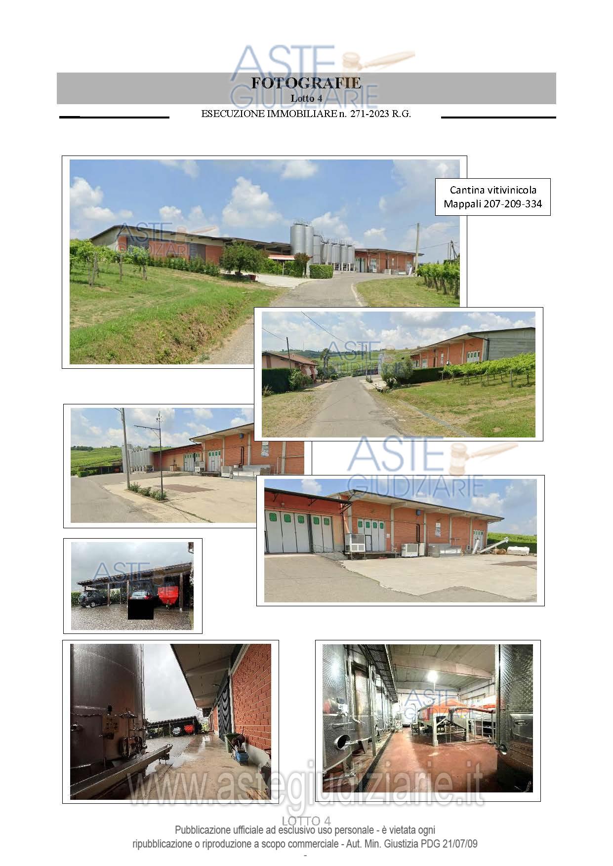 Vendita in attesa dell'emissione del nuovo bando d'asta. LOTTO 4: Compendio agricolo per la produzione di vini, costituito da vigneti con impianti di pregio, vinificati in una cantina vitivinicola. Completa il presente lotto, posti in contesto separato, una vecchia costruzione residenziale di 3 piani con propri accessori agricoli, vecchio capannone in muratura, mentre in corpo separato un altrettanto vecchio fabbricato, con copertura spiovente, il quale include tre spazi accessori ed un cassero centrale. Presenti tre porticati eseguiti senza permesso edilizio. Ultimo prezzo base € 1.426.000,00 (offerta minima € 1.069.500,00). Giudice Dott. Antonio Maria Codega. Professionista delegato alla vendita Dott. Giacomo Dellaglio - Email "studiodellaglio1@gmail.com"; Tel. 3479337709. Custode Giudiziario Istituto Vendite Giudiziarie Di Vigevano - Email "immobiliarivigevano@ifir.it"; Tel. 0381691137. Rif. Tribunale di Pavia - Espropriazione immobiliare (cartabia) n. 271/2023