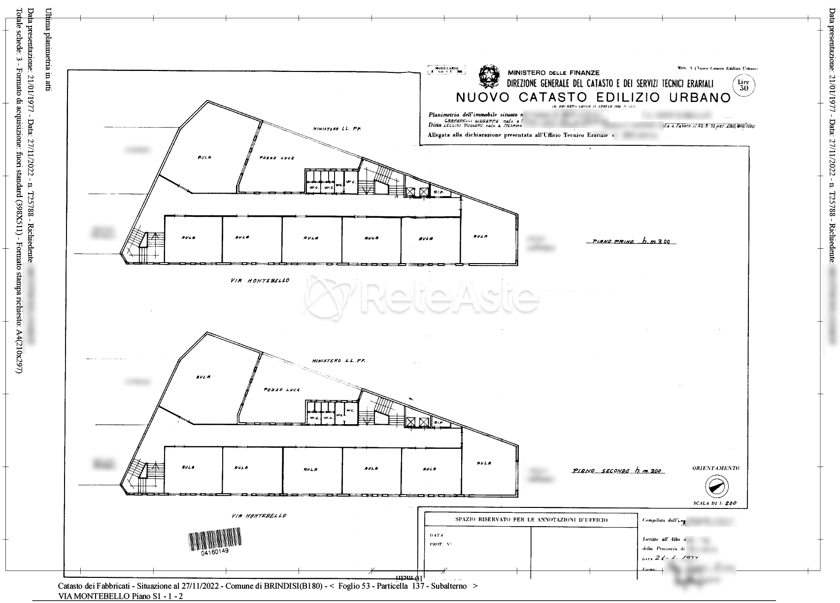 Vente en attente de l’émission d’un avis nouveau. Bâtiment, construit entre 1975 et 1976, utilisé jusqu'en 2005 comme institut d'enseignement secondaire et actuellement inutilisé. La structure s'étend sur cinq étages au-dessus du sol et un sous-sol, avec deux accès depuis la Via Montebello. L'immeuble est en béton armé avec une toiture plate et dispose de grands espaces bien distribués. Au rez-de-chaussée se trouvent des bureaux, une salle de réunion et des sanitaires pour un total de 697 mètres carrés. Aux premier, deuxième et troisième étages se trouvent des salles de classe et des services supplémentaires, tandis que le quatrième étage abrite des salles de classe et de grandes terrasses. Le sous-sol comprend des locaux de stockage, des entrepôts et des locaux techniques. Le bâtiment est doté d'une cour intérieure, sur laquelle donnent les salles de classe des différents niveaux. Les fenêtres et les vitres sont en aluminium avec double vitrage, les portes intérieures en bois stratifié et le système de chauffage est équipé de radiateurs en fonte. L'état de conservation de la structure est acceptable, tandis que l'intérieur nécessite des travaux de rénovation, car des infiltrations de toiture et des signes de détérioration de la peinture extérieure sont présents. Grâce à sa grande superficie et à la polyvalence des espaces, cet immeuble offre une excellente opportunité de rénovation et de valorisation. Avec un changement de destination, il pourrait être transformé en un complexe résidentiel moderne, avec 20 appartements lumineux aux étages supérieurs, trois locaux commerciaux au rez-de-chaussée et 20 places de parking au sous-sol, offrant une valeur ajoutée pour les futurs résidents ou investisseurs. Un projet de développement alliant fonctionnalité et potentiel de croissance dans une zone stratégique de la ville. L'immeuble est situé dans le quartier de Santa Chiara, une zone périphérique mais bien desservie par les transports en commun du centre de Brindisi. Sa position stratégique, à seulement 200 mètres de la route principale vers Lecce et à 170 mètres du parc municipal, garantit un accès facile aux principaux axes de communication et à l'un des plus grands espaces verts de la ville. Le quartier a principalement une vocation résidentielle, enrichie par la présence de bâtiments publics et de services essentiels, en faisant une zone idéale pour de nouvelles destinations et projets de rénovation.