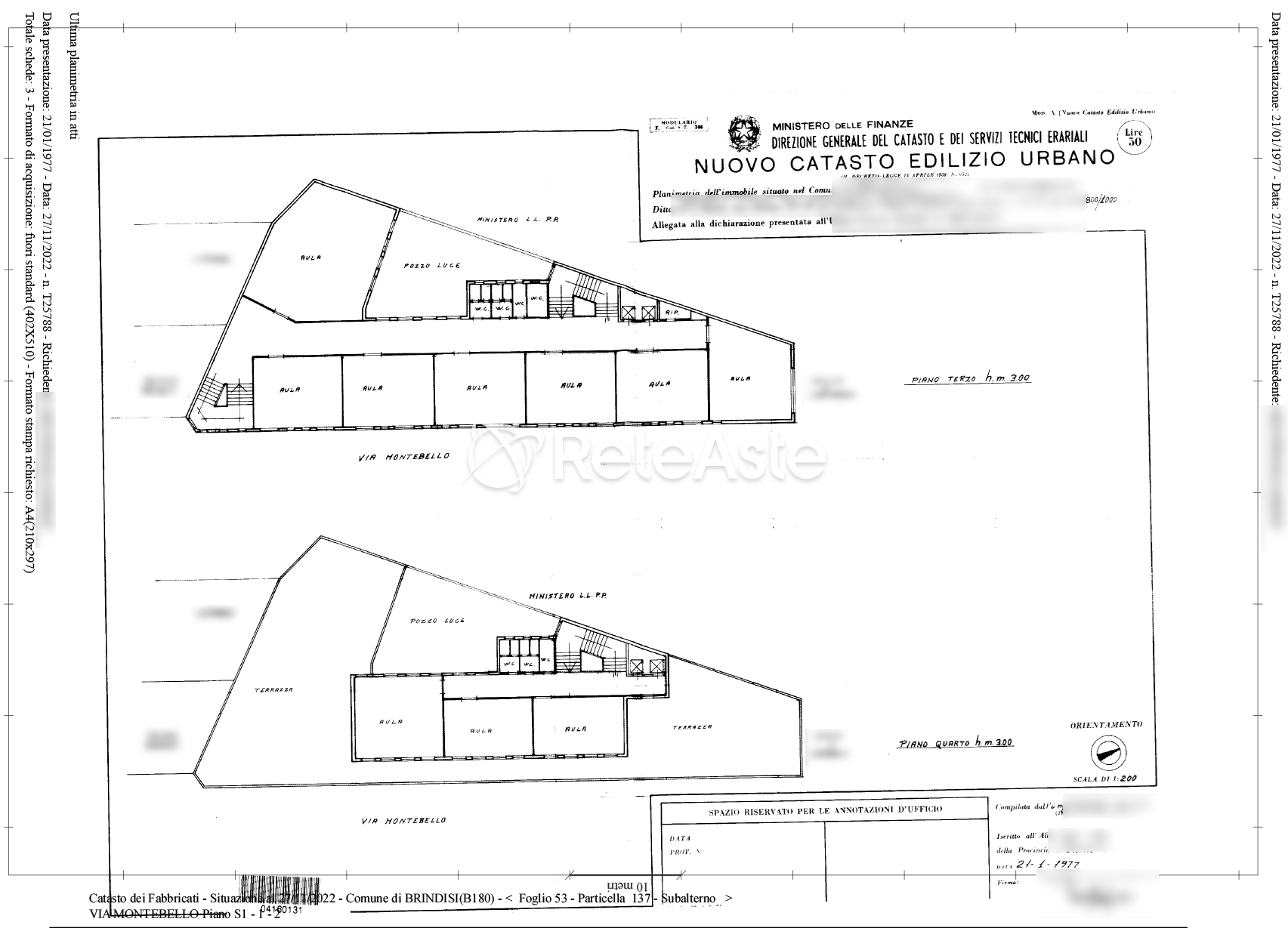 Vente en attente de l’émission d’un avis nouveau. Das Gebäude, das zwischen 1975 und 1976 errichtet wurde, diente bis 2005 als Oberschule und steht derzeit leer. Die Struktur erstreckt sich über fünf oberirdische Etagen und ein Untergeschoss mit zwei Zugängen von der Via Montebello aus. Das Gebäude ist aus Stahlbeton mit Flachdach und verfügt über großzügige und gut verteilte Räume. Im Erdgeschoss befinden sich Büros, ein Besprechungsraum und Badezimmer mit einer Gesamtfläche von 697 qm. In den ersten, zweiten und dritten Stockwerken befinden sich Unterrichtsräume und zusätzliche Einrichtungen, während der vierte Stock Klassenräume und große Terrassen beherbergt. Im Untergeschoss befinden sich Lager-, Lagerräume und Technikräume. Das Gebäude verfügt über einen Innenhof, an dem die Klassenräume der verschiedenen Ebenen liegen. Die Fenster und Verglasungen sind aus Aluminium mit Isolierglas, die Innentüren sind aus Sperrholz und die Heizungsanlage verfügt über Gussheizkörper. Der Erhaltungszustand der Struktur ist angemessen, während die Innenräume Renovierungsarbeiten erfordern, da es Undichtigkeiten vom Dach und Anzeichen von Verfall der Außenanstriche gibt. Aufgrund seiner großzügigen Fläche und der Vielseitigkeit der Räume bietet dieses Gebäude eine hervorragende Möglichkeit zur Aufwertung und Nutzung. Durch eine Umstrukturierung kann es in ein modernes Wohngebäude mit 20 hellen Wohnungen in den oberen Etagen, drei Geschäftslokale im Erdgeschoss und 20 Parkplätzen im Untergeschoss umgewandelt werden, was einen Mehrwert für zukünftige Bewohner oder Investoren darstellt. Ein Entwicklungsprojekt, das Funktionalität und Wachstumspotential in einem strategischen Bereich der Stadt vereint. Die Immobilie befindet sich im Stadtteil Santa Chiara, einem Vorort, der jedoch aufgrund der guten Verkehrsanbindung an das Zentrum von Brindisi durch zahlreiche öffentliche Verkehrsmittel gut erreichbar ist. Die strategische Lage, nur 200 Meter von der Staatsstraße 16 nach Lecce und 170 Meter vom Stadtpark entfernt, ermöglicht einen einfachen Zugang zu den Hauptverkehrsadern und einer der größten Grünflächen der Stadt. Der Stadtteil hat hauptsächlich eine Wohnnutzung mit öffentlichen Gebäuden und wesentlichen Diensten, was ihn zu einem idealen Gebiet für neue Nutzungen und Sanierungsprojekte macht.