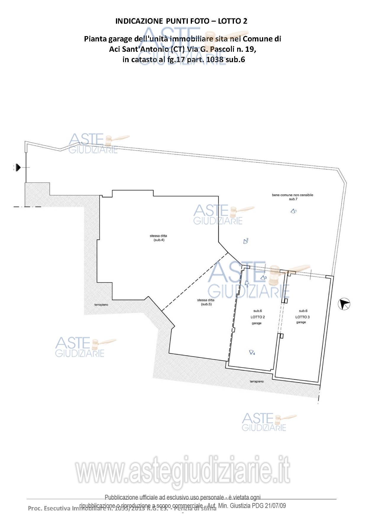 Vendita all'asta Senza incanto, con gara telematica sincrona mista - LOTTO 2: Garage al piano primo sottostrada di metri quadrati 119. Prezzo base € 31.488,00 (offerta minima € 23.616,00). Data vendita 06/03/2026 ore 09:30. Giudice Dott. Nelly Gaia Mangiameli. Professionista delegato alla vendita Avv. Yaneth Consalvo - Email "avec2016@outlook.it". Custode Giudiziario Avv. Yaneth Consalvo - Email "avec2016@outlook.it"; Tel. 095507762. Rif. Tribunale di Catania - Esecuzione immobiliare post legge 80 n. 1055/2013