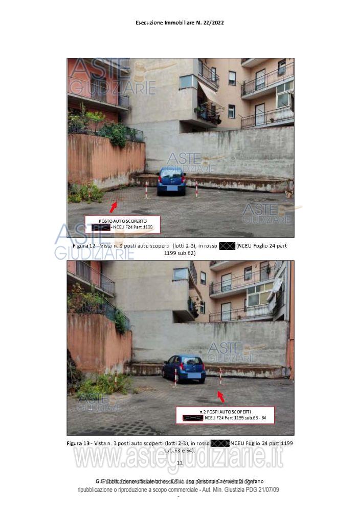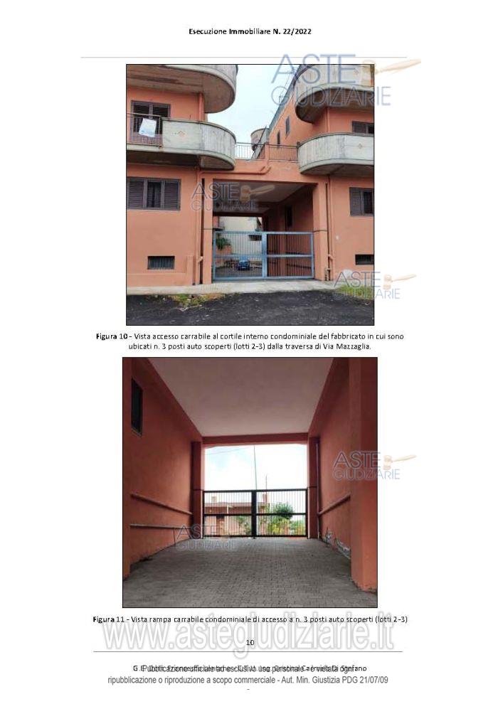 Vendita all'asta Senza incanto, con gara telematica sincrona mista - LOTTO 2: Proprietà di: tre posti auto scoperti ubicati nel cortile interno condominiale del fabbricato, a cui si accede da un cancello carrabile ubicato nella traversa di via Mazzaglia, in Mascali, fraz. Nunziata, censiti in catasto fabbricati al Fg. 24, part.1199, sub.62, cat. C/6, cl.2^, mq.12, r.c. euro 21,69; Fg. 24, part.1199, sub.63, cat. C/6, cl.2^, mq.12, r.c. euro 21,69; Fg. 24, part.1199, sub.64, cat. C/6, cl.2^, mq.12, r.c. euro 21,69; e deposito ubicato al piano S1 del corpo A del fabbricato. Prezzo base € 6.862,50 (offerta minima € 5.146,88). Data vendita 25/02/2026 ore 18:30. Professionista delegato alla vendita Avv. Francesco Patane' - Email "avvfpatane@gmail.com"; Cell. 3498917878. Custode Giudiziario Avv. Francesco Patane' - Email "avvfpatane@gmail.com"; Cell. 3498917878. Rif. Tribunale di Catania - Esecuzione immobiliare post legge 80 n. 22/2022